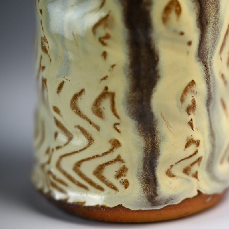 Milgrim’s Konkoguro glaze is more than just a surface treatment—it’s a symbolic and aesthetic fusion that pays homage to both the ancient and contemporary, the East and the West. Konko-yu ("Concord glaze") is one of Milgrim's signature glazes developed at his American studio in Concord, Massachusetts—named Konko-Gama ("Concord Kiln"). The name was granted in 2004 by Dr. Sen Genshitsu of the Urasenke tea tradition and carries layered meaning: (kon – “present”/“new”), (ko – “old”/“traditional”), and (gama – “kiln”)—symbolizing the fusion of American innovation with traditional Japanese tea-ceremonial aesthetics. These pieces are not only visually compelling but also conceived with the functionality and spirit of chanoyu in mind—balancing tactile harmony, scale, form, and surface that invite contemplative use.