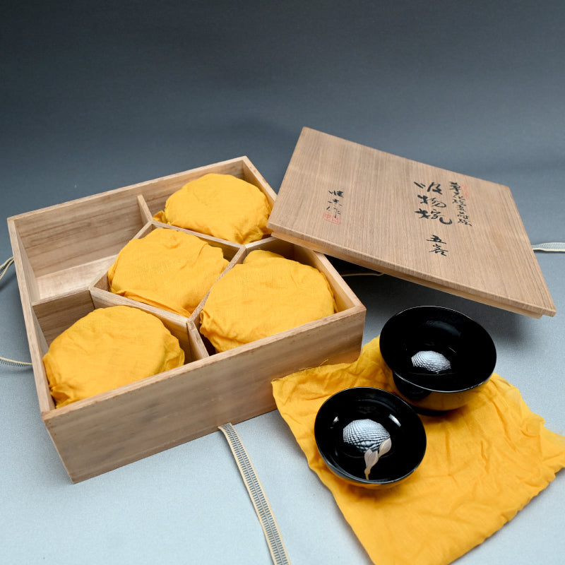 Lacquer Bowl Set / 輪島塗 濱田屋 井波 唯志 “草花蒔絵 吸物椀 5客”