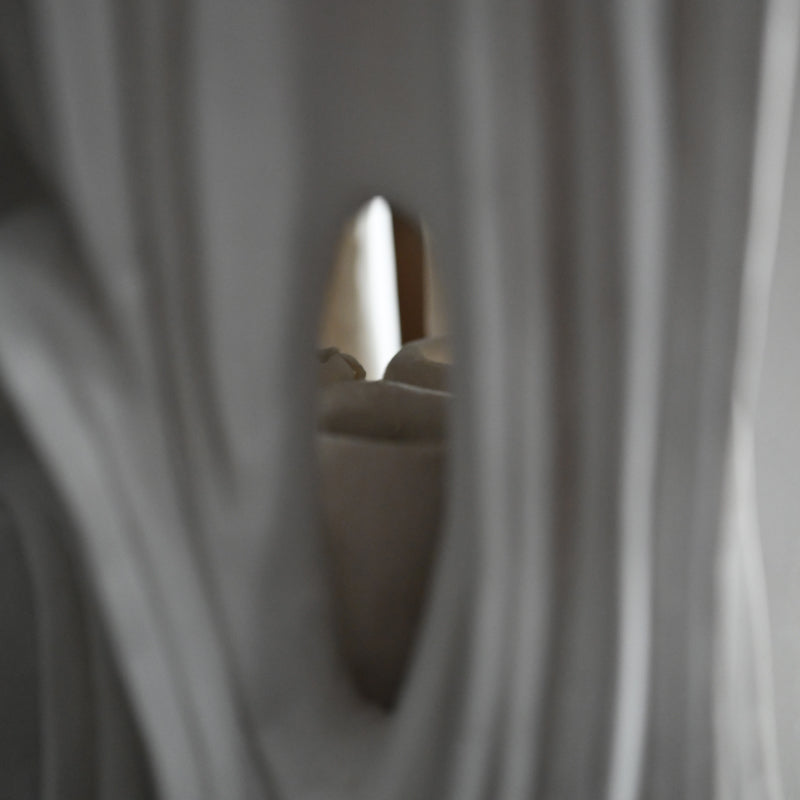 Goto Miho was born in Nagasaki Prefecture in 1998, and initially exhibited two dimensional art before finding a comfortable creative valve in clay. She completed advanced studies at the Tajimi City Ishoken Ceramics Research Facility in 2025 and is currently based in Toki City. She creates works using porcelain clay that visualize ambiguous and ever-changing sensations. Emphasizing the act of creation by hand, she values the organic forms that emerge naturally rather than adhering to predetermined designs. This intuitive approach often results in works that resemble organic structures, like human organs, though this resemblance is unintentional. Recently, she has focused on hand-built, vertically oriented sculptures refined by a process of carving and scraping away the clay, her hands slowly removing the excess, so that only the essential form remains. She constructs both the inner and outer parts simultaneously, ensuring structural integrity. Her work has been exhibited in Japan including the “Ceramic Synergy” exhibition at the Kyoto City KYOCERA Museum of Art in 2023. Combining ceramics with two-dimensional expression, she draws inspiration from the limitations of clay, continuing to explore its creative potential.