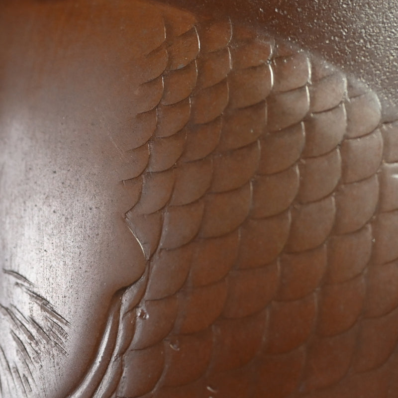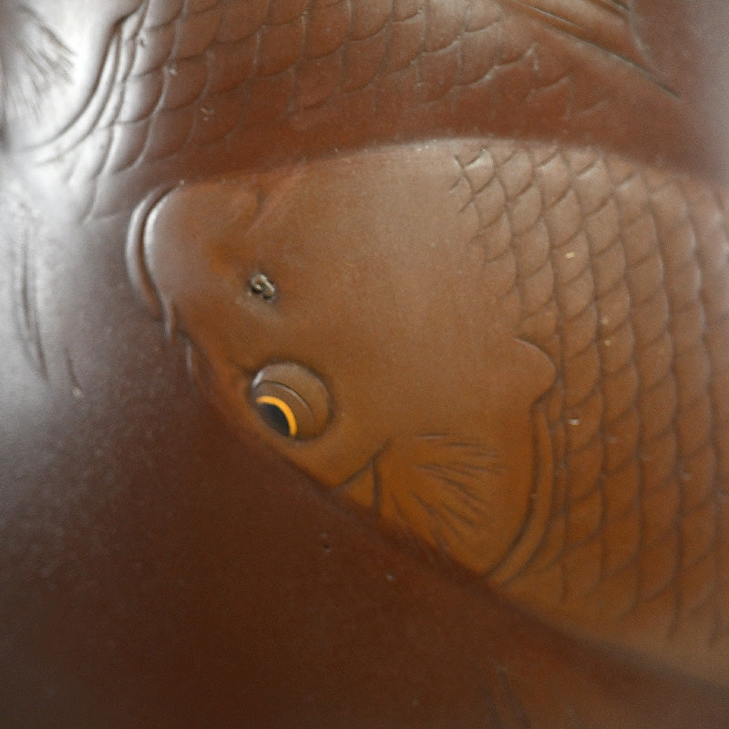 Leisurely Japanese Swimming Koi Vase ー内免勝二, 紫峰 "青銅製花瓶 遊鯉”