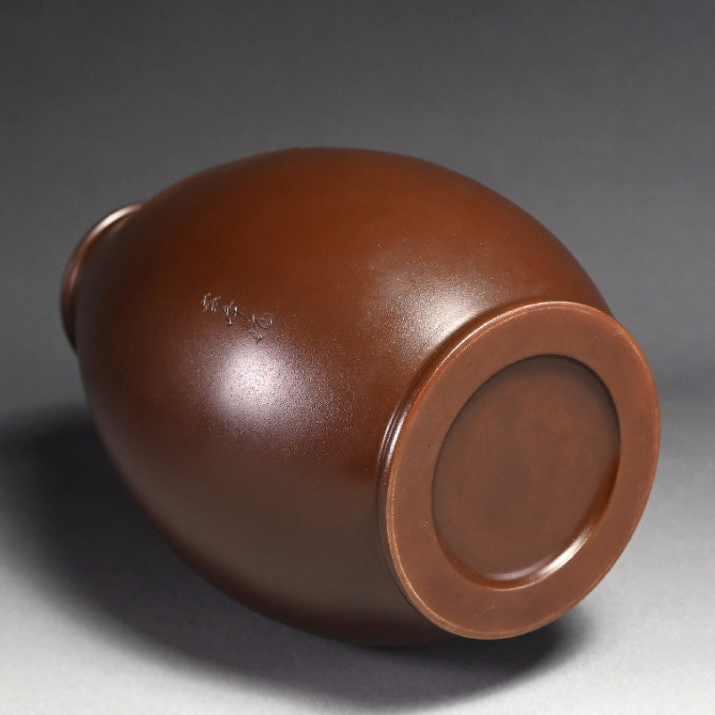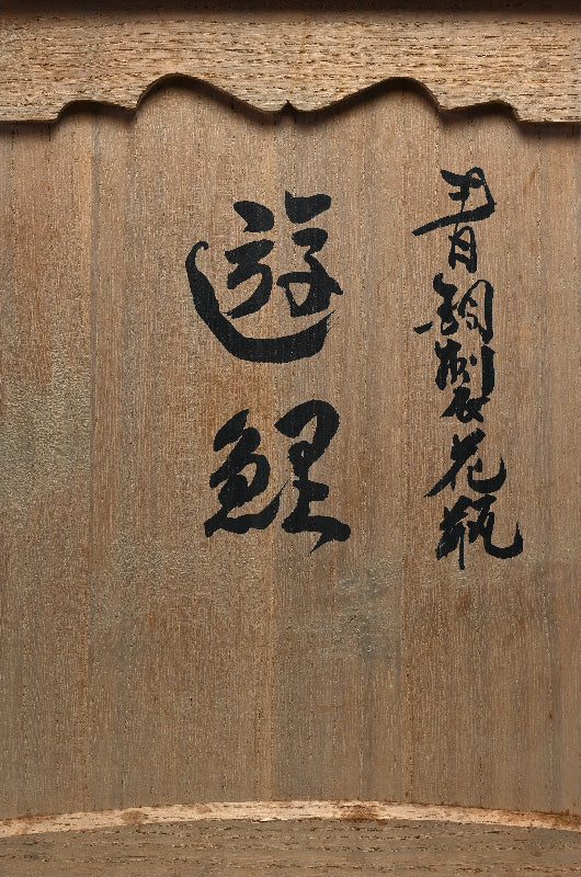 1976年春に作られた署名入りのオリジナル木箱に収められた、内免勝二(初代 紫峰)による花瓶です。表面には のんびりと浮遊する鯉が描かれています。高岡市立博物館のコレクションには、非常によく似た作品が所蔵されています。直径20cm、高さ31cmで、保存状態は良好です。