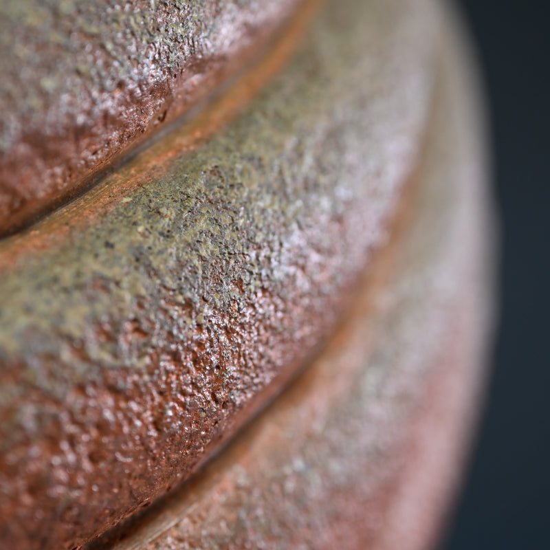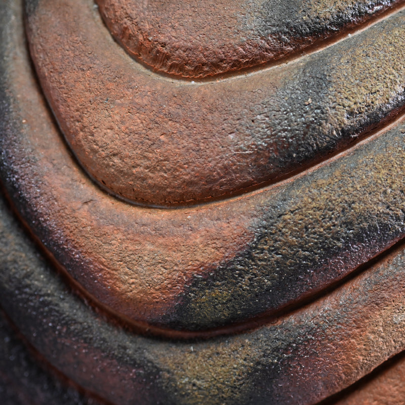 The Toko pottery maintains the traditional firing method of Bizen ware using red pine. The kiln was founded by Konishi Toichiro (Toko I) who was the grandson of early Meiji Master Craftsman Nagami Toraku, The first generation perfected the Sangiri technique, which had previously been created by chance. The kiln passed to his daughter Mitsue (Konishi Toko II, b. 1928) in the 1950s. Konishi Tozo, the grandson of the founder, is certified as a holder of an intangible cultural property designated by Bizen City. Tozo was born in 1947. He first submitted to the 18th National Traditional Crafts Exhibition (Nihon Dento Kogeiten) in 1971 where he has been awarded. In 1973 he was accepted into the Chunichi Kokusai Togeiten International Ceramics Exhibition where he has been awarded, and in 1975 was awarded at the Okayama Prefectural Art Exhibition. He received the Kaneshige Toyo prize in 1988. His work was selected for the 1997 exhibition 1000 years of Bizen at the National Ceramic Museum in France, and in 2003 was awarded the order of Cultural Merit From Okayama Prefecture.