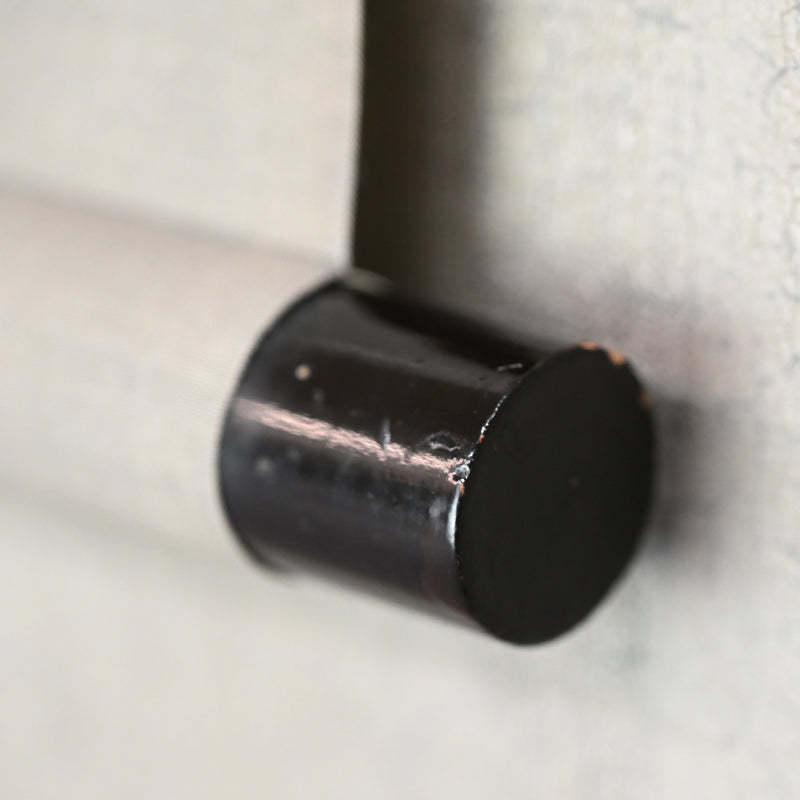 Skulls lie forgotten among the wavering dried grasses under a poem of running script by Shishimon XIX Ichimian, one in the lineage of Kagami Shiko, on this 19th century image reminding us of the transient nature of our brief existence. Ink on paper in cloth border, completely restored in a manner reflecting the original with black lacquered rollers. The scroll is 45 x 192.5 cm (17-3/4 x 75-3/4 inches) and is in excellent condition.
