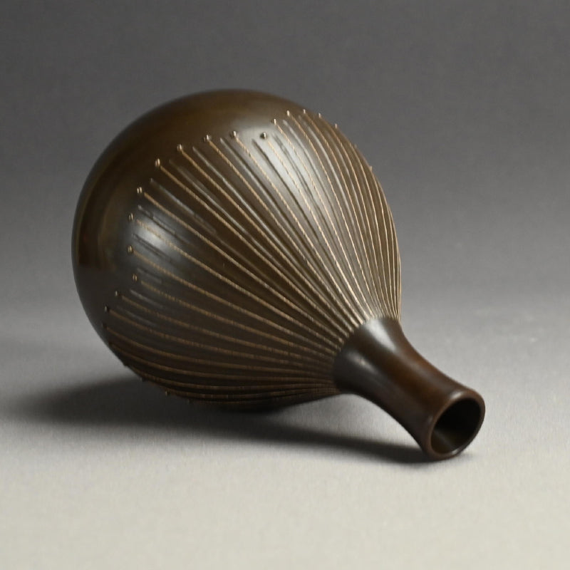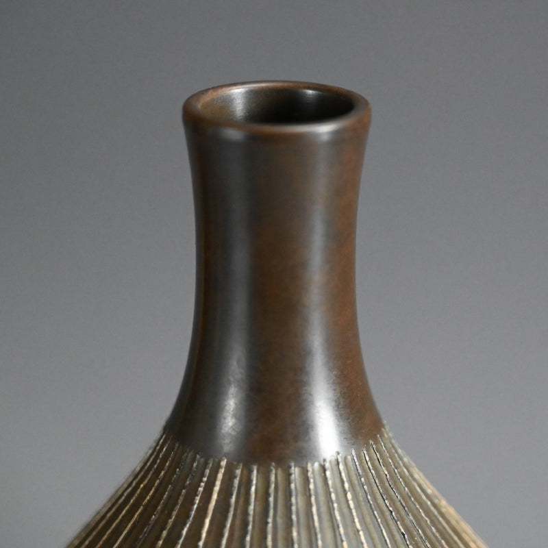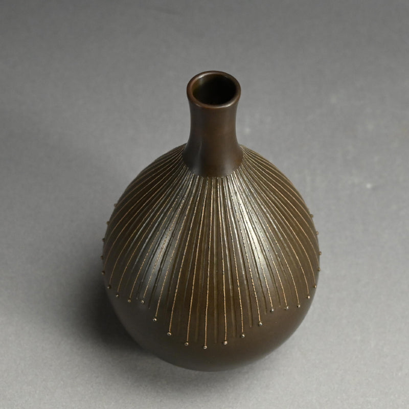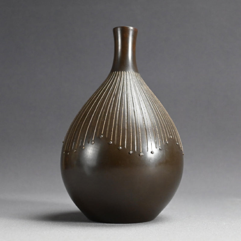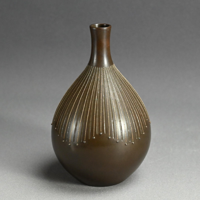モダニズム青銅象嵌花瓶 ー般若勘渓「徳利形花瓶」
