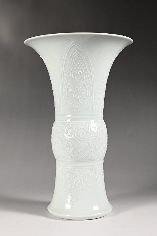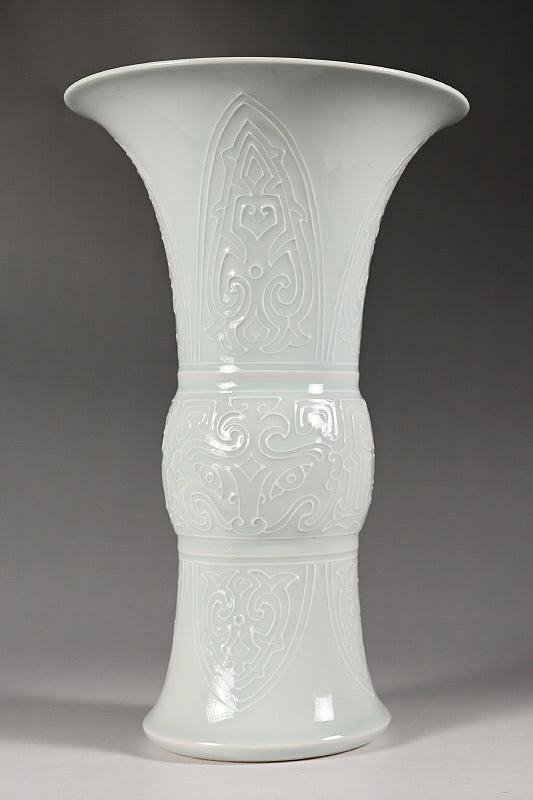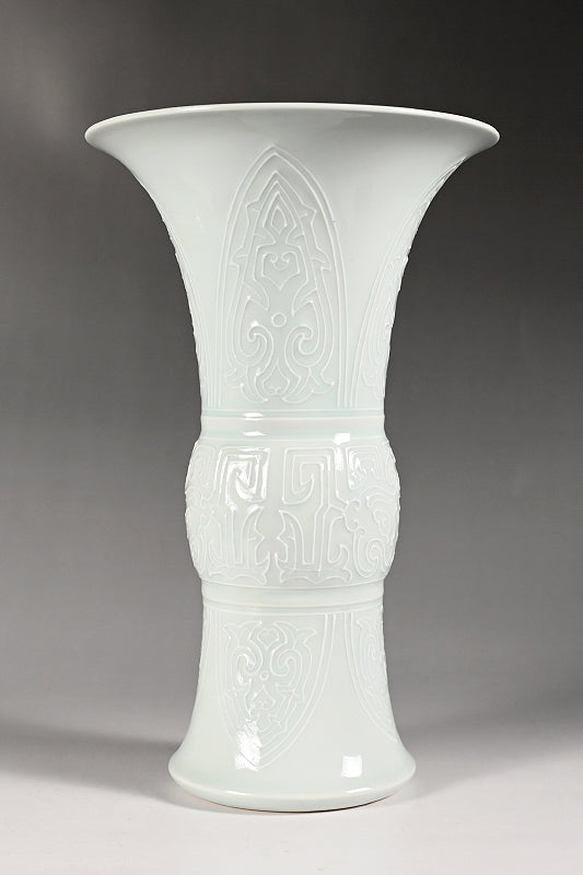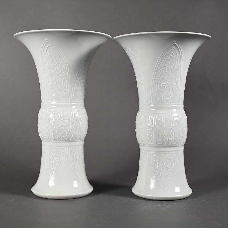 Pair White Gu-Vases