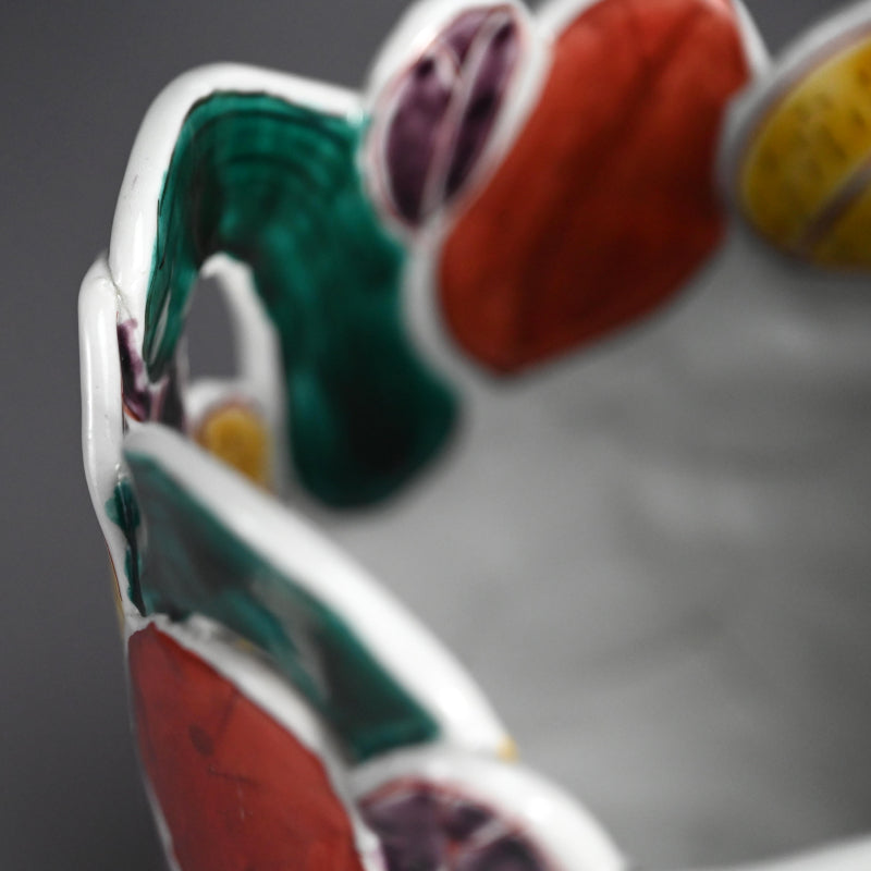 Matsuda Yuriko was born in Ashiya, Hyogo Prefecture in 1943nd lives and works in Oshino, Yamanashi Prefecture. Yuriko is an avid exhibitor; it is a wonder she has time to do any work at all. Both within Japan (Nihon Togei Ten, Gendai Togei Ten etc.) and without she has an impressive list of exhibitions in a host of countries. She received the Yagi Kazuo prize in 1986 among many others. According to the book “Touch Fire”, Many of the women artists included in this exhibition are independent innovators who work outside the constraints of Japanese ceramic traditions. However, several of the artists, including Matsuda Yuriko, continue to use traditional techniques with skills that rival, if not exceed, those of their predecessors, and in doing so they create new and challenging contemporary ceramic art. They reinterpret the traditional decorative technique for porcelain vessels, called iro-e over-glaze enameling, and transposes its motifs onto nonfunctional objects. Her beautifully enameled iro-e porcelain sculptures are witty odes to two favorite subjects: the female body and Mount Fuji. For more information on this artist and examples of her work see the books Contemporary Japanese Ceramics, Fired with Passion by Beatrice Chang and Samuel Lurie. Also see Contemporary Clay, Japanese Ceramics for the New Century based on the Museum of Fine Arts Boston exhibition or Soaring Voices, Contemporary Japanese Women Ceramic Artists (2010). Her work is also currently on tour with the Radical Clay Exhibition at the Art Institute of Chicago.