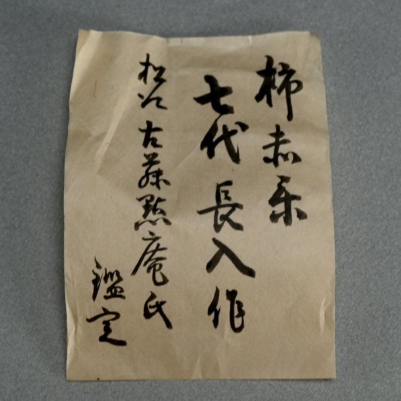 樂 長入(1714-1770)は 茶道用陶芸で名高い京都の陶工の家系、樂家の7代目当主です。樂家の6代目当主である左入の長男として生まれ、1748年に家業を継ぎ 樂工房の当主となりました。シンプルさ、自然の美しさ、侘び寂びの美学を強調した樂様式の革新と洗練で知られています。主に茶碗を手掛けた彼の作品は、大胆でありながら繊細なデザインが特徴で、樂伝統の特徴である赤と黒の釉薬の使い方に並外れた技術を発揮しました。長入は 樂家と裏千家茶道流との強い関係を継続し、茶道の美学と哲学を補完する茶器を創作しました。彼の貢献により、樂家の茶陶師としての名声はさらに確固たるものとなり 後継者たちの基準が確立されました。1770 年に彼が亡くなった後、樂家の伝統は後継者である8代目の樂家、得入によって継承されました。