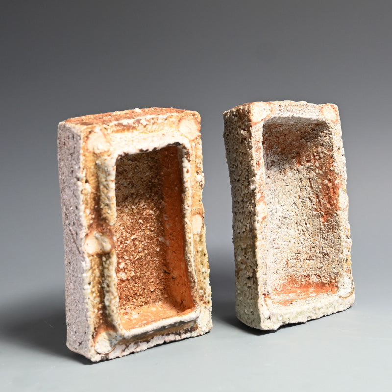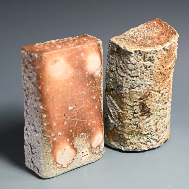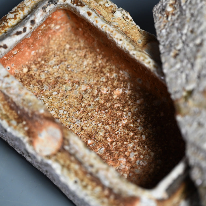 古谷道夫(1946-2000)は信楽焼の神様の一人であり、穴窯に関する著書を著した作家で、20世紀後半を代表する芸術家の一人です。信楽に生まれ、甲南高校工芸科を卒業後、1964年に京都工芸繊維大学(寛次郎、浜田など、多くの偉大な芸術家たちと同じく)に進学し、さらに研鑽を積みました。独立後、1970年に中世以来となる穴窯を信楽に築きました。彼は真のパイオニアであり、伝統を復興させ、その後30年間で30基以上の窯を築窯しました。彼ほど、一つの焼成技術にひたむきに情熱を注いだ芸術家は他にいません。日本伝統工芸展、日本陶芸展、中日国際陶芸展などにも出展。作家としての絶頂期に逝去。この作家の功績については、著書『穴窯 ―窯造りと焼成』をご覧ください。