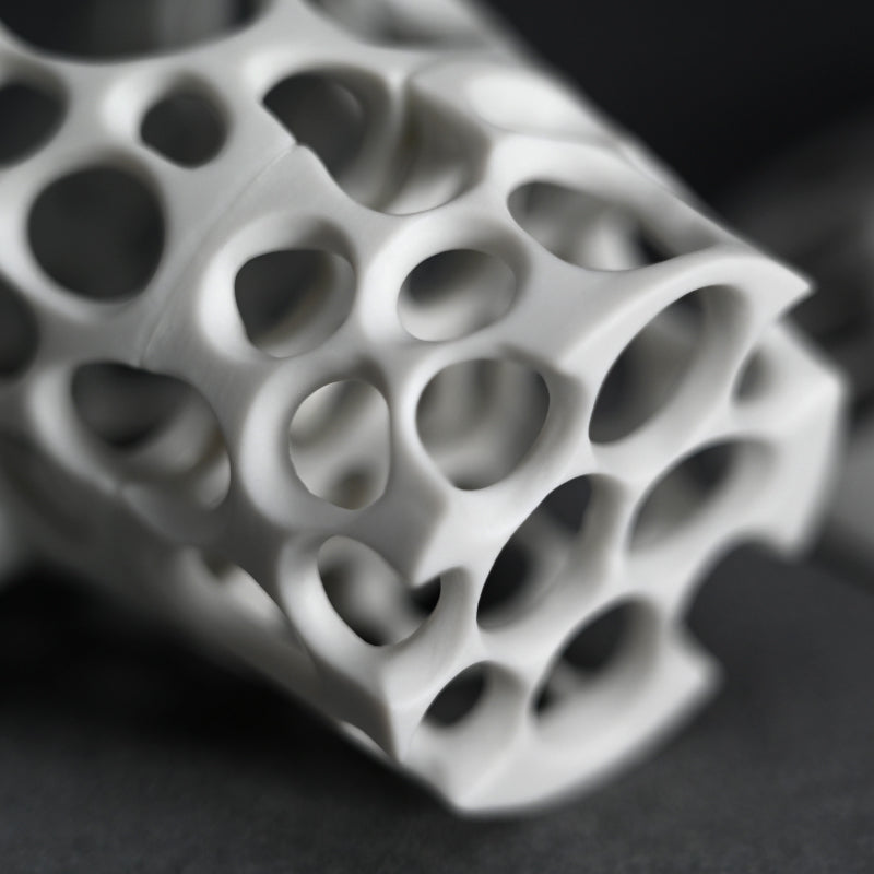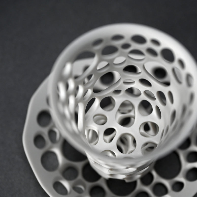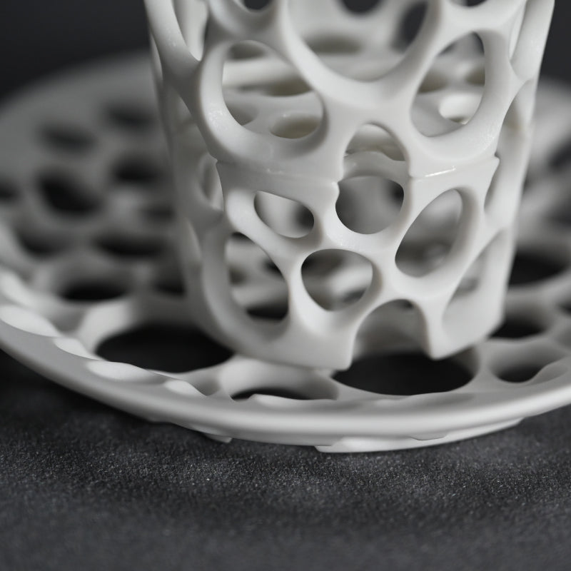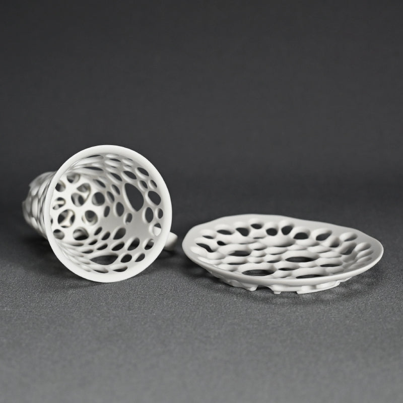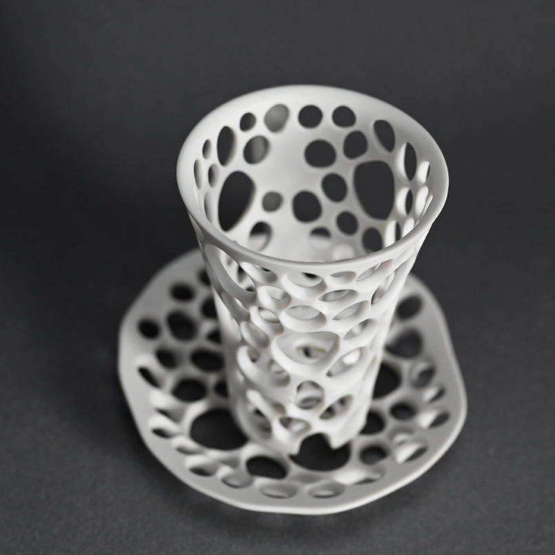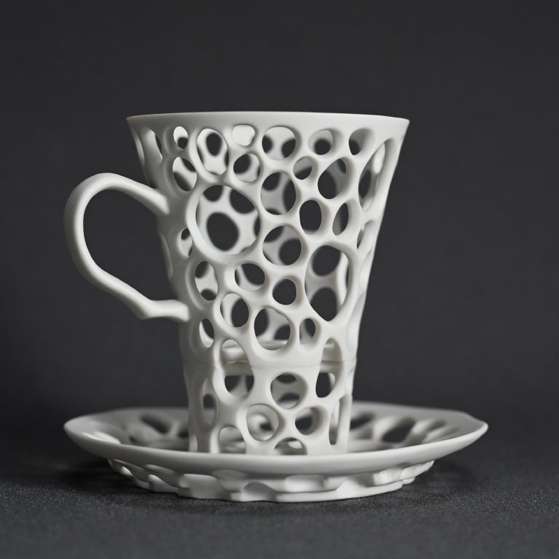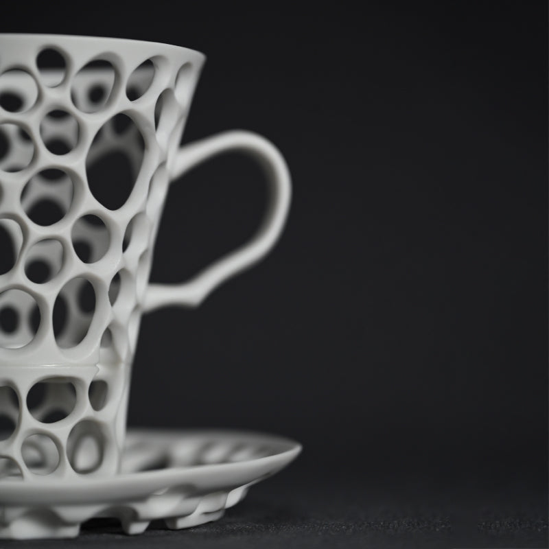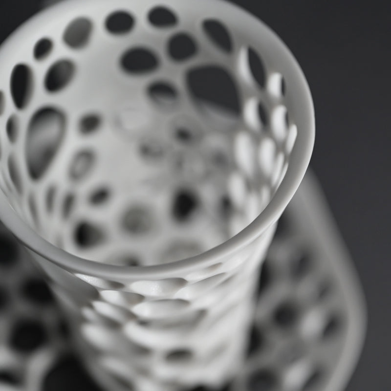 Born in Aichi Prefecture in 1985, Kato Yoshiyasu graduated from the Department of Craft and Design at Kurashiki University of Science and the Arts in 2008, and went on to complete advanced studies at the progressive Tajimi City Ishoken Ceramics Research Facility in 2014. In 2018, he established his own studio in Nishio City, Aichi Prefecture. His creations are known for their delicate sculptural forms and functional beauty. He creates his work using a technique called slip casting, a technique typically used for mass production. He was initially drawn to slip casting because it allowed him to create clean, non-rotational forms. However, he gradually realized that this technique offers many expressive possibilities that cannot be achieved through other methods. Since 2014, he has participated in numerous juried exhibitions in Japan. Among many accolades, in 2024, he was awarded the Special Jury Prize at the 13th International Ceramics Exhibition Mino, affirming his status as a highly accomplished artist in the world of ceramics.