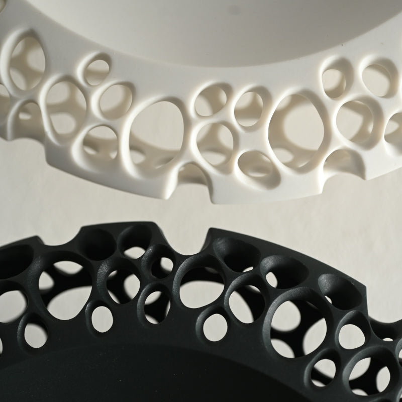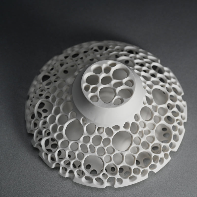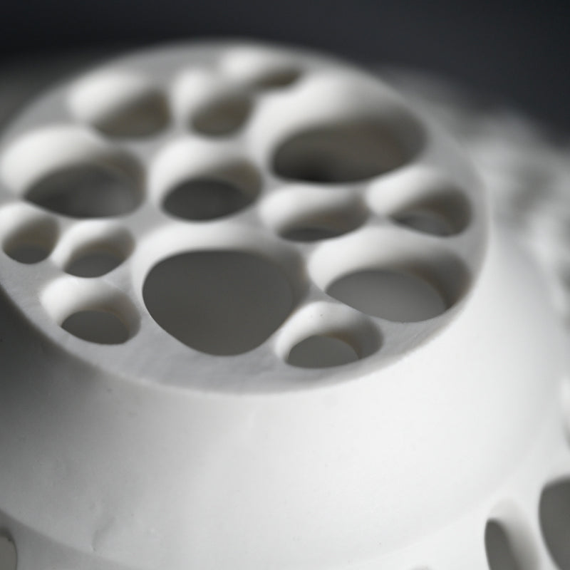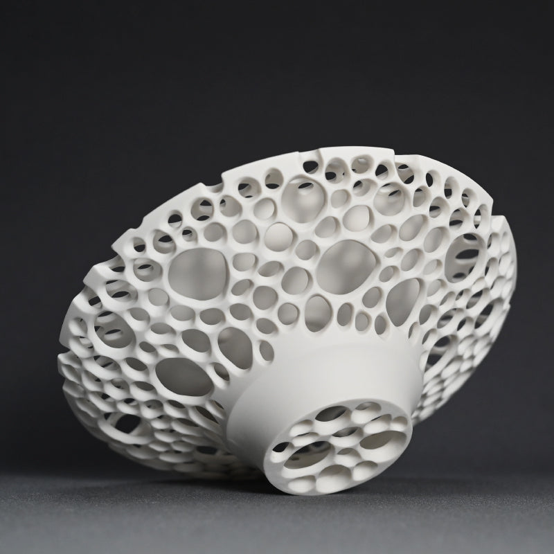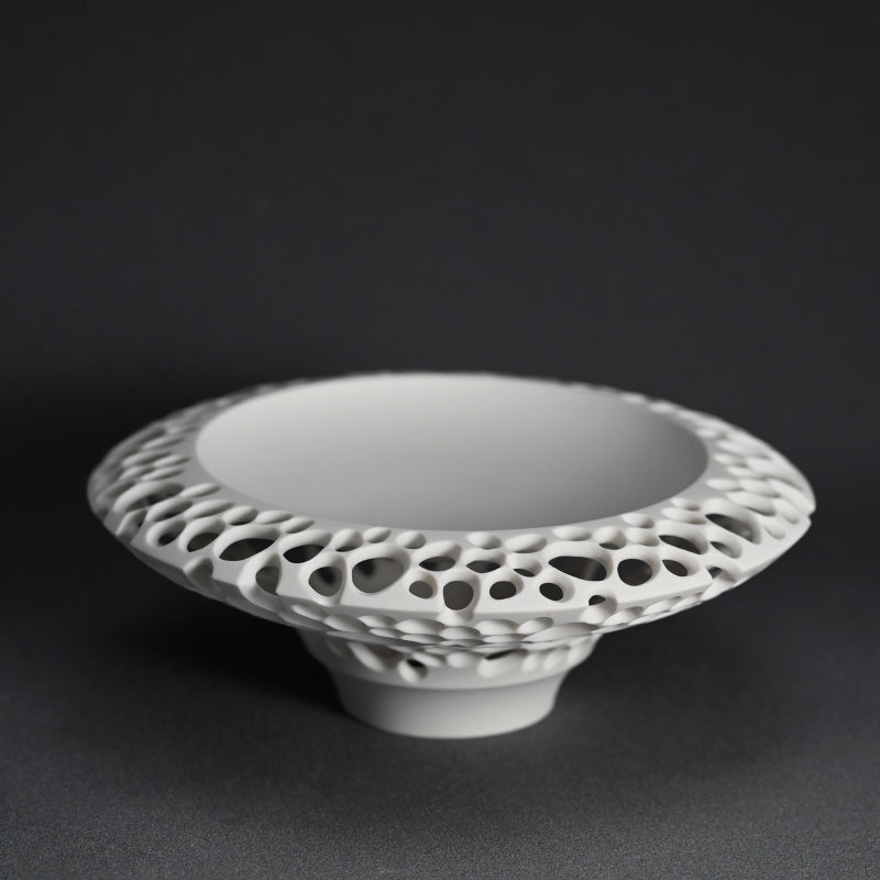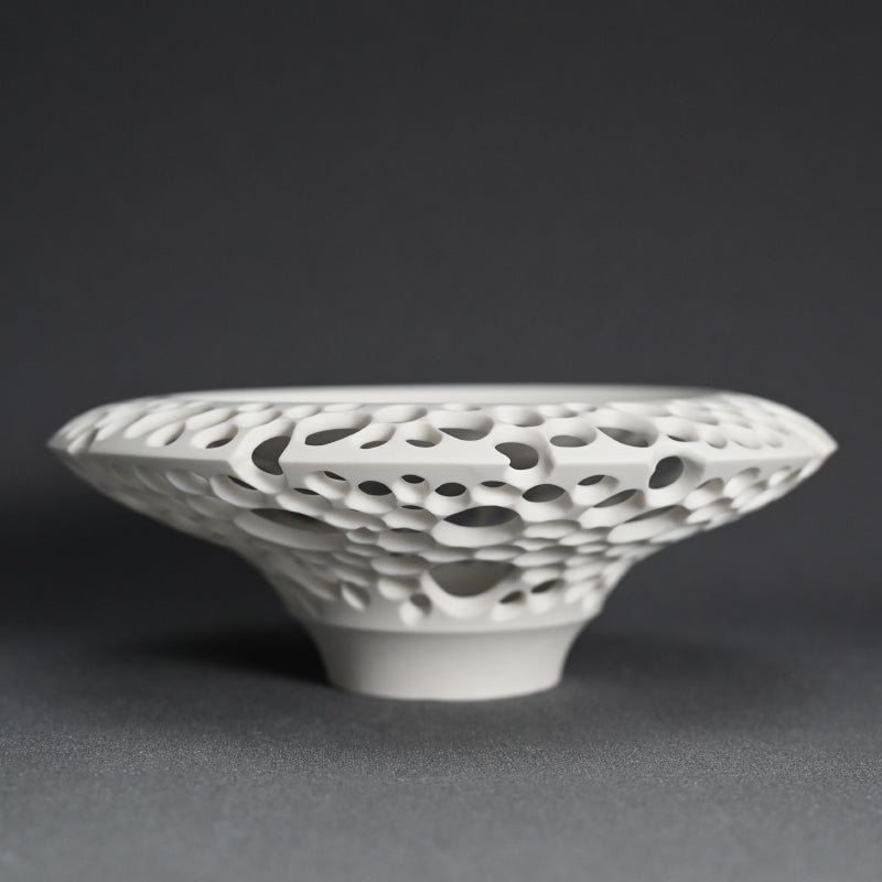 Born in Aichi Prefecture in 1985, Kato Yoshiyasu graduated from the Department of Craft and Design at Kurashiki University of Science and the Arts in 2008, and went on to complete advanced studies at the progressive Tajimi City Ishoken Ceramics Research Facility in 2014. In 2018, he established his own studio in Nishio City, Aichi Prefecture. His creations are known for their delicate sculptural forms and functional beauty. He creates his work using a technique called slip casting, a technique typically used for mass production. He was initially drawn to slip casting because it allowed him to create clean, non-rotational forms. However, he gradually realized that this technique offers many expressive possibilities that cannot be achieved through other methods. Since 2014, he has participated in numerous juried exhibitions in Japan. Among many accolades, in 2024, he was awarded the Special Jury Prize at the 13th International Ceramics Exhibition Mino, affirming his status as a highly accomplished artist in the world of ceramics.