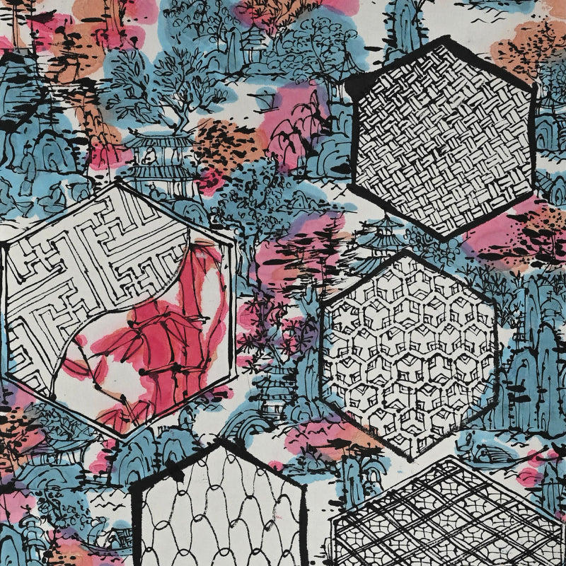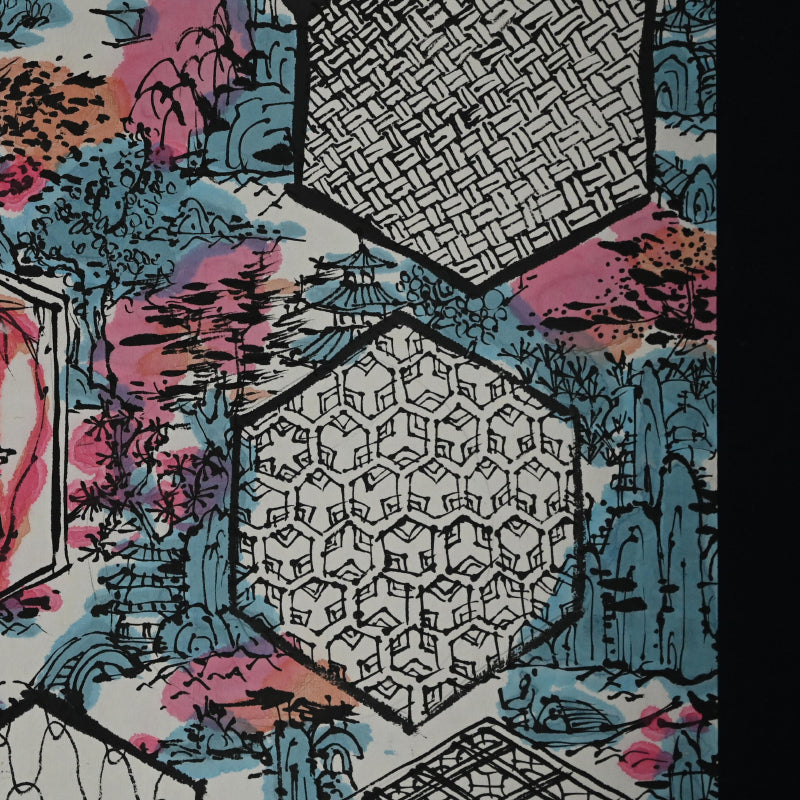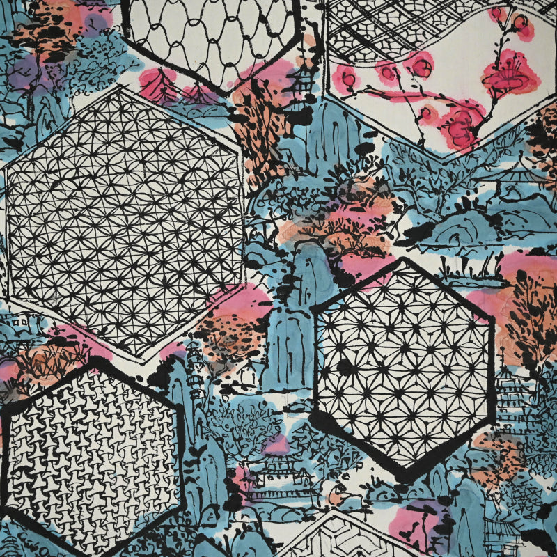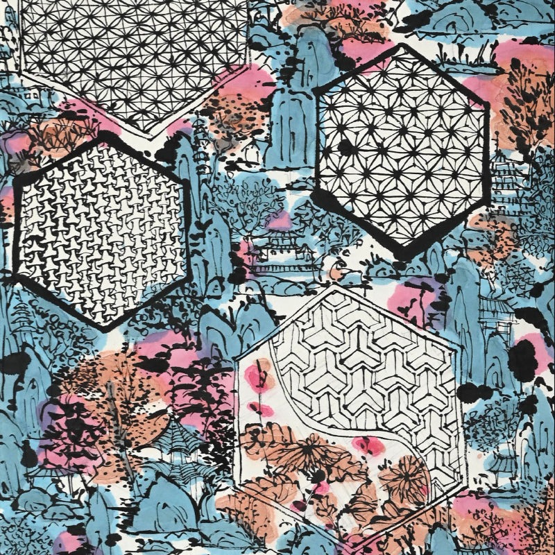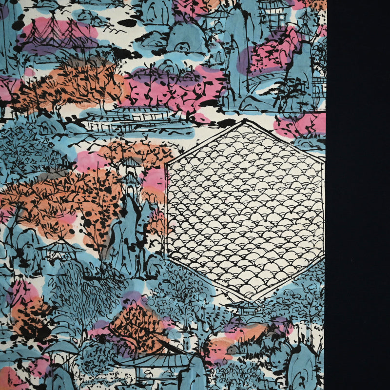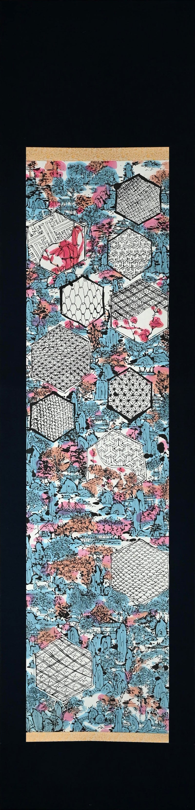 染付の楽園風景絵巻 ー重森陽子掛け軸「染付の楽園」