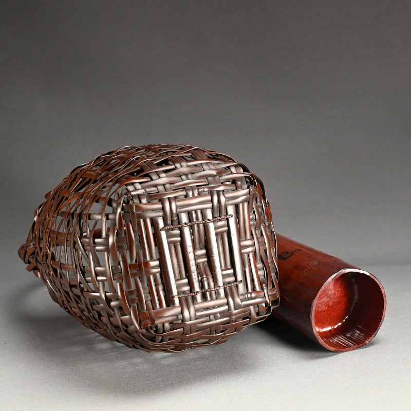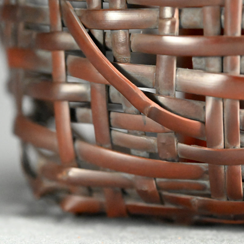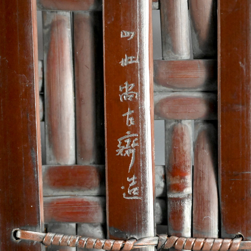 Hayakawa Shokosai IV (1902-1975) was the eldest son of Hayakawa Shokosai III (1864-1922). Shokosai IV succeeded as Shokosai aged 21, when his father Shokosai III passed away in 1922. After the war, the Shokosai family moved from Osaka to Kyoto where the family continues the basketmaking tradition to this day. Shokosai I (Togoro, 1815–1897) was born in Sabae City, Fukui Prefecture in 1815. Togorō, lost his father at the age of 19. He then moved to Kyoto and began apprenticing as a basket craftsman. In 1845 he relocated to Osaka and adopted the name Shokosai. He received numerous accolades, including awards at the First National Industrial Exhibition in 1877 (Meiji 10) and other domestic and international expositions. His work earned the distinction of being purchased by the Empress herself. Shokosai II (1860–1905) was the third son of the first-generation Shokosai, born with the name Takejirō, he succeeded to the title in 1897 (Meiji 30). He won second prize at the Fifth National Industrial Exhibition in 1903. His tenure as Shokosai was short, lasting only eight years until his death at 45, resulting in a limited body of work. Shokosai III (1864–1922) was born in Osaka as the fifth son of the first-generation Shokosai, his given name was Eisaburō. After studying under his father, he worked in Tokyo using the name Shōsai. Following his brother’s death in 1905, he returned to Osaka and succeeded as the third-generation Shokosai. He received the Phoenix Crest Award at the 1878 Paris Exposition and continued to garner honors at exhibitions worldwide. In 1887, he was honored by imperial purchase. In 1919, he co-founded the "Naniwa Basket Friends Association," leading Osaka’s bamboo craft scene and becoming a prominent figure in modern bamboo art. Shokosai III excelled in innovative coloring techniques and loose weaving styles, elevating bamboo basket craftsmanship into the realm of fine art. His bold and expressive style emphasized artistic harmony while maintaining an individualistic approach. He served as a member of the Osaka Crafts Association and passed away in 1922 at the age of 59. The Fourth Generation Hayakawa Shokosai IV (1902–1975) was born in 1902 as the son of the third-generation Shokosai, he became chairman of the Bamboo Art Association and was selected for the prestigious Nitten exhibitions. He passed away in 1975 at the age of 73. Hayakawa Sokosai V (1932–2011) was born in 1932 in Osaka as the eldest son of the fourth-generation, he continued the family’s legacy until his passing in 2011.