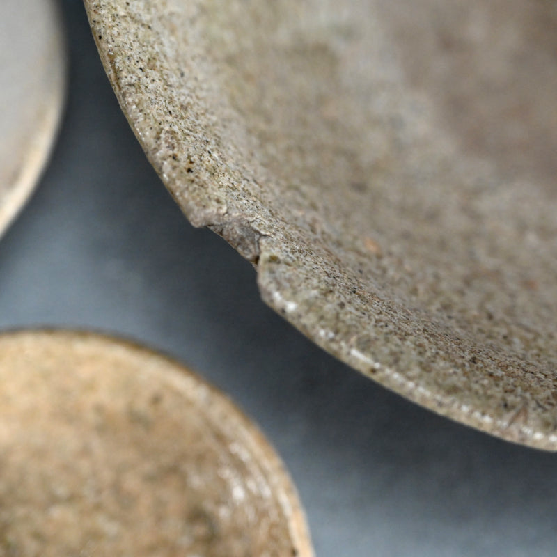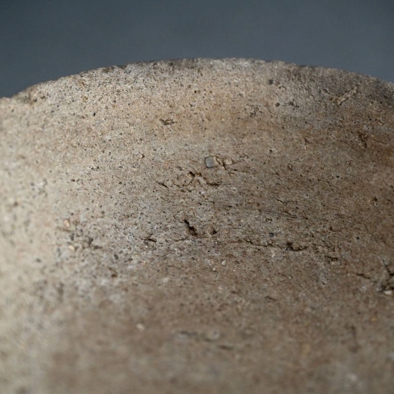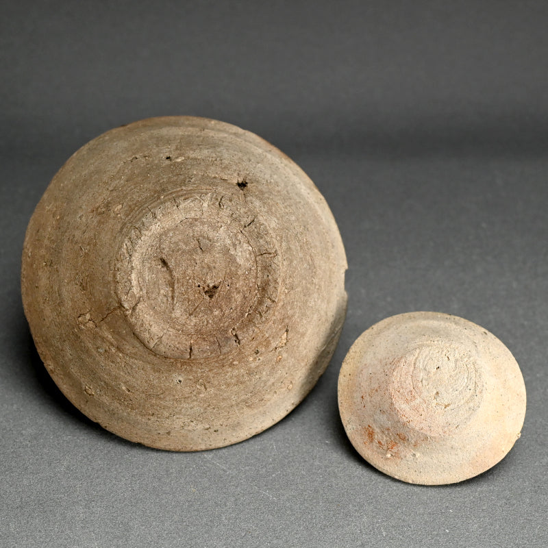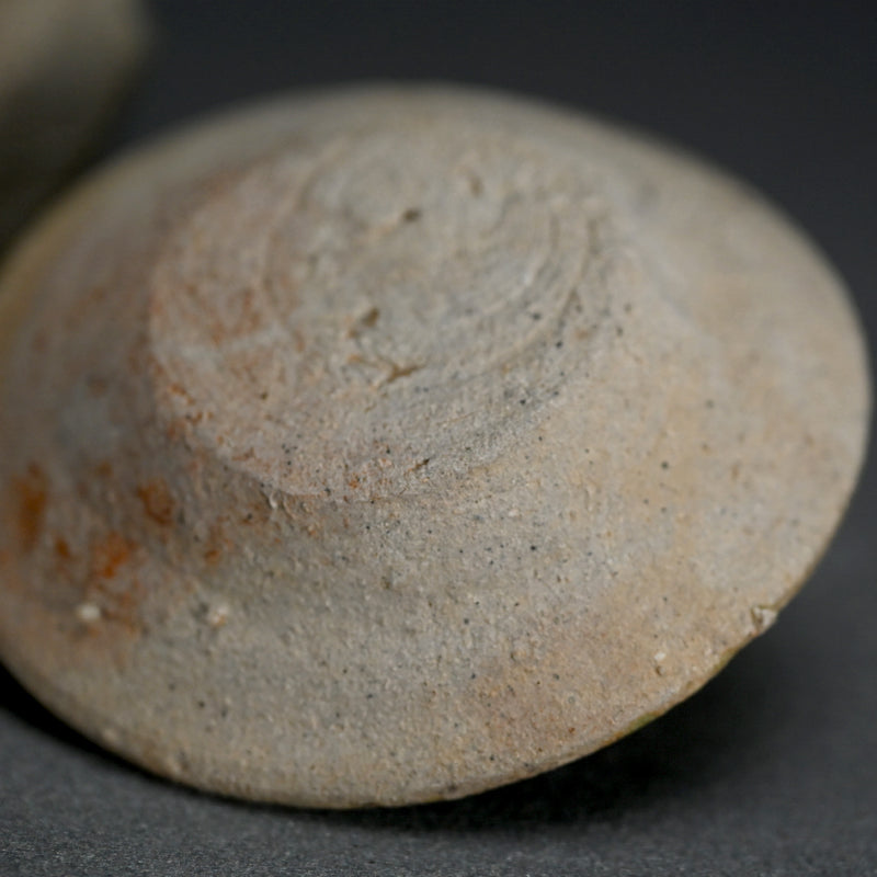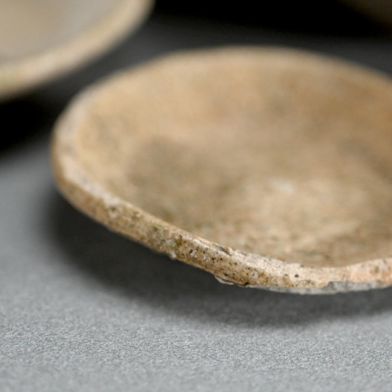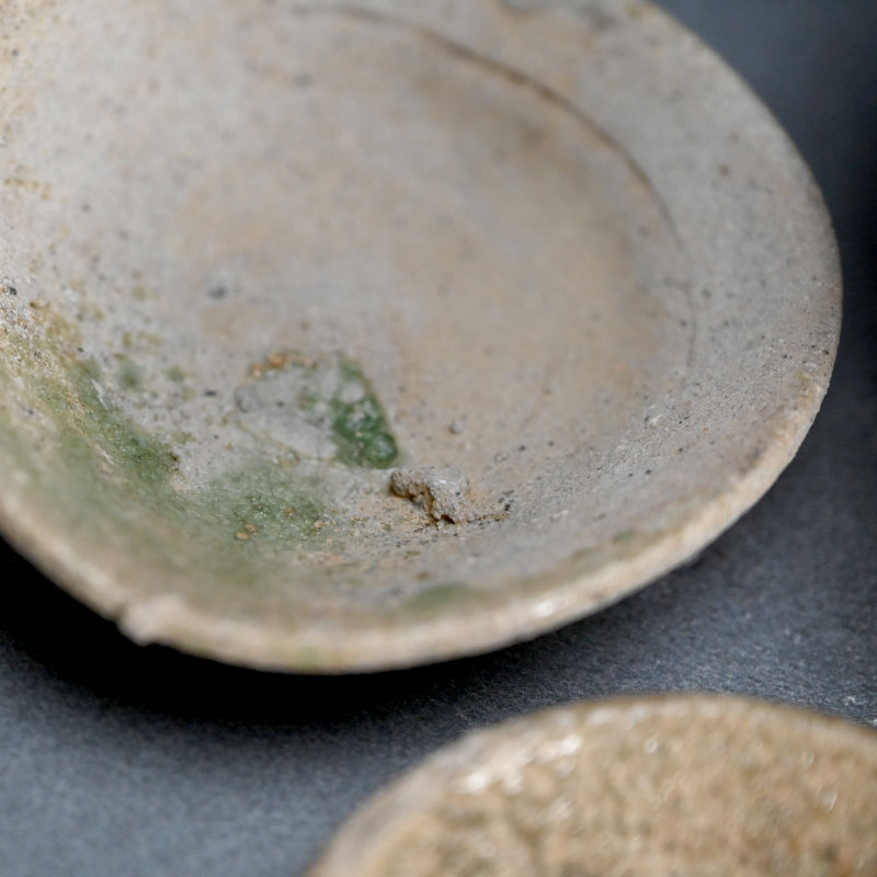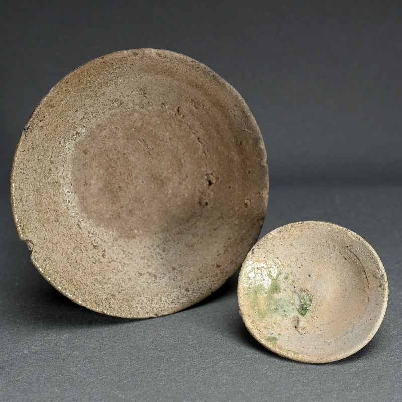 山茶碗は、平安時代後期(794-1185年)から室町時代(1333-1568年)にかけて、主に東海地方(愛知県と岐阜県)で大量に生産された様々な種類の素焼きの和食器の総称です。この時代の初めには 儀式用の容器や貯蔵用の壺が一般的な陶器でしたが、生産量の増加により入手しやすくなり、下層社会からも陶器の需要が高まりました。その結果、瓶から食器へと変化しました。山茶碗の生産は平安時代末期の武家や地主への富貴分配から始まって 室町時代初期まで続き、鎌倉・南北朝時代(1185-1392)に最盛期を迎えました。鎌倉時代中期には 大量の山茶碗が焼かれるようになりました。溶けたり、壊れたり、損傷した作品は窯の周囲に捨てられていたでしょう。また、窯は不安定で予測不能で、しばしば崩壊しました。そのため、古代の技法の復興に関する研究が盛んに行われた20世紀初頭の発掘調査では、少量の陶器しか発見されませんでした。