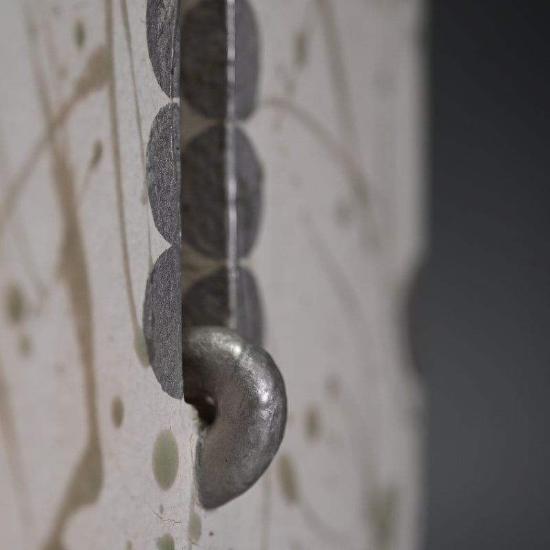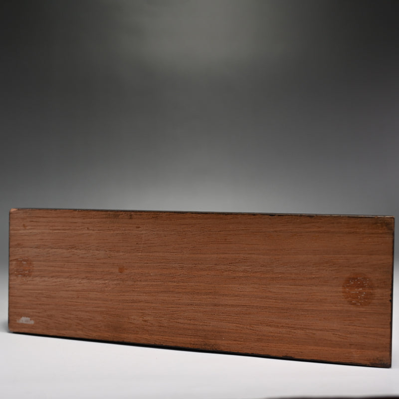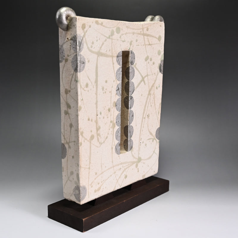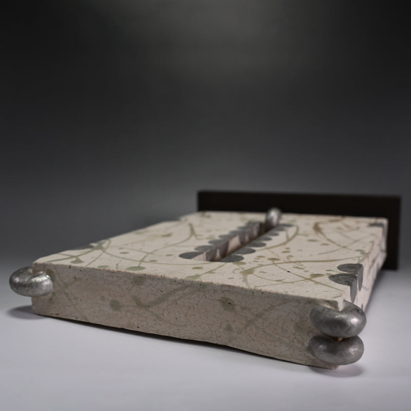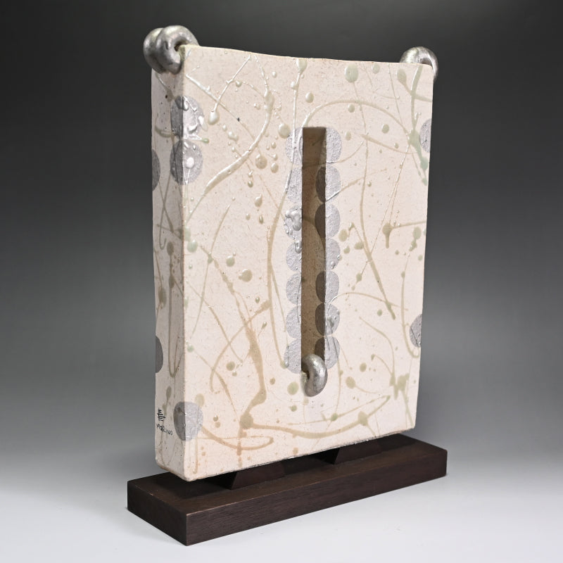 A ceramic panel in white by Morino Taimei enclosed in the original signed wooden box titled WORK 88-6. It is 25.5 x 4.5cm depth 31.5cm tall (10 x 2 x 12-1/2 inches) including the wooden base and is in excellent condition.