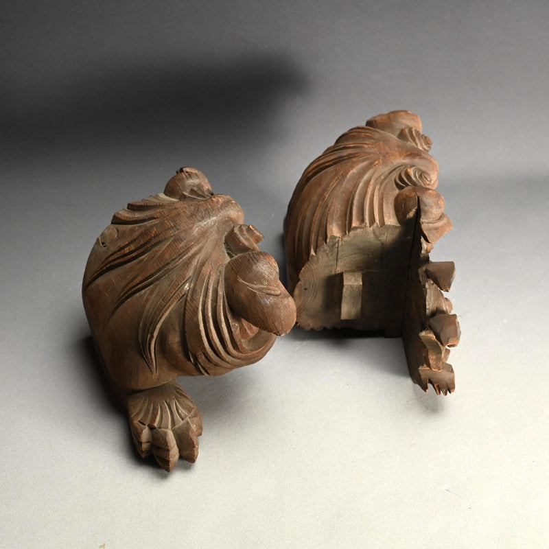 Antique Carved Wood Shishi Architectural Lion Ornaments
