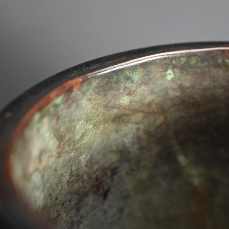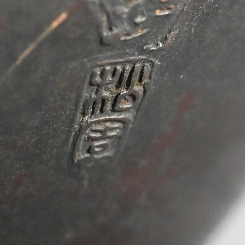 Shoen I (1868-1935) was a bronze artist of the Tokyo school, who moved to Takaoka in 1908, bringing with him two sons. Suga Shoen II (1898-1979), birth name Seiichi, along with his younger brother studied under the first Shōen from whom they inherited the techniques of lost-wax casting, and in 1935 Seiichi succeeded to the name of second-generation Shoen, his brother taking the name Mokusen. In 1940 he was first accepted into the 4th Shin-Bunten, and in 1944 received the Special Prize. From 1945 he taught at the Toyama Prefectural Takaoka Technical School of Industrial Arts. He exhibited at the 4th Japan Traditional Art Crafts Exhibition in 1957, and in 1962 became a committee member of the Japan Contemporary Art and Crafts Association, later serving as councilor (1965) and executive advisor (1974). He was designated a Preserver of Toyama Prefecture’s Intangible Cultural Property in 1964, became a member of the Nitten in 1966, and in 1974 was recognized by the Japanese government as a Preserver of an Important Intangible Cultural Property. That same year, he was awarded the Order of the Sacred Treasure, Gold Rays with Rosette. In 1979, shortly before his death, he also served as executive advisor to the Japan New Crafts Artists Federation. He has been succeeded by his own son, Shoen III (b. 1925) who still works today at the family foundry in Takaoka.