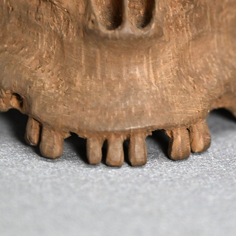 Never seen before, a bamboo root carved into the shape of a skull dating from the early 20th century. It is truly an incredible work of art. Beneath we can clearly see the natural structure of the bamboo. Absolute mastery of design and knowledge of the hollowed structure of bamboo itself would have been essential to complete a carving of this magnitude. It is 11.5 x 14.5 x 8.5 cm (4-1/2 x 5-3/4 x 3-1/2 inches) ad is in excellent condition.