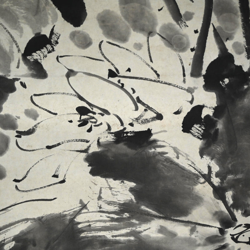 Antique Pair of Japanese Sumi-e Ink Lotus Scrolls, Hakuun ー白雲 “蓮之図”