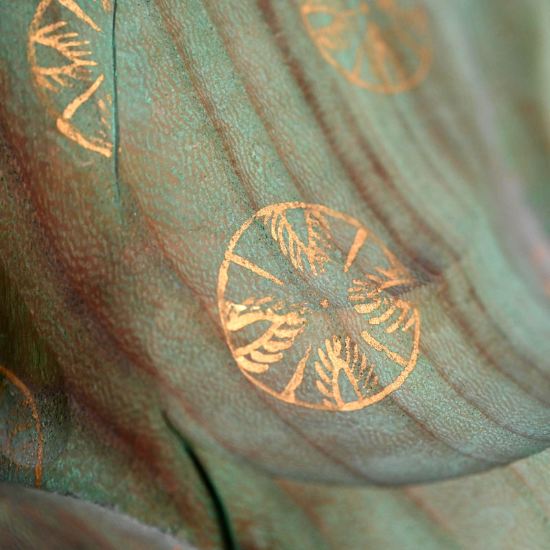 A life-like carving of the poet Kakinomoto Hotomaro, the eyes weighted with years, his robes billowing around his emaciated form. The sculpture is carved from a single piece of light Kiri-wood (paulownia). It is signed on the base Katsuhiro, and measures roughly 22 x 36 x 28 cm (9 x 14 x 11 inches) and is in excellent condition.