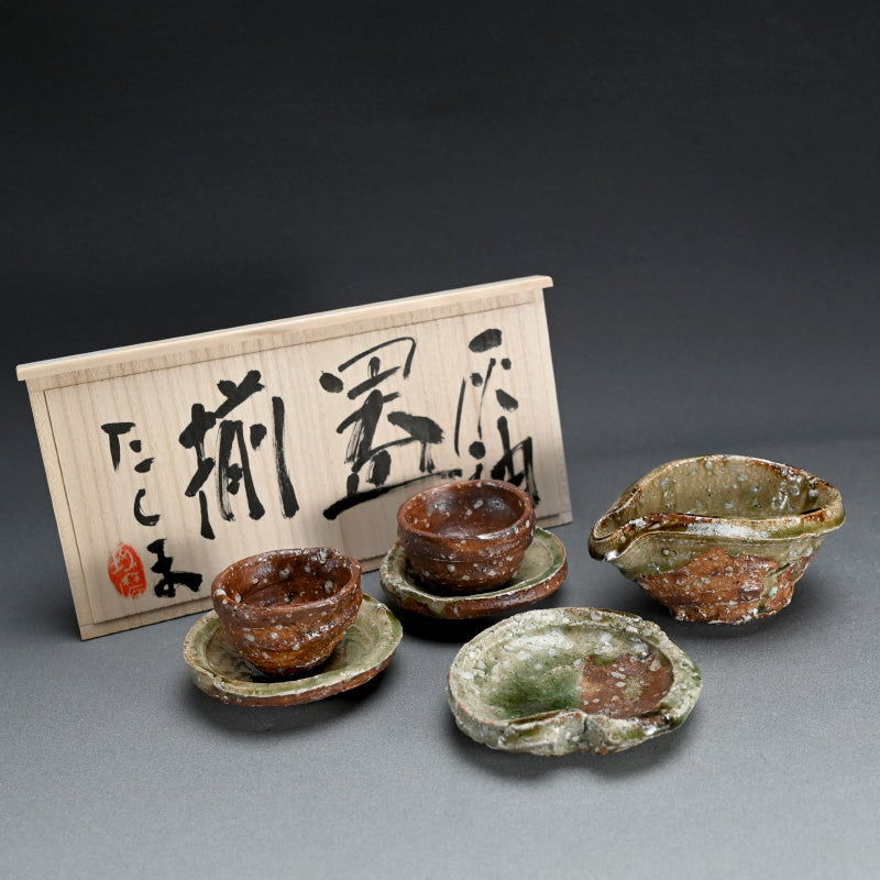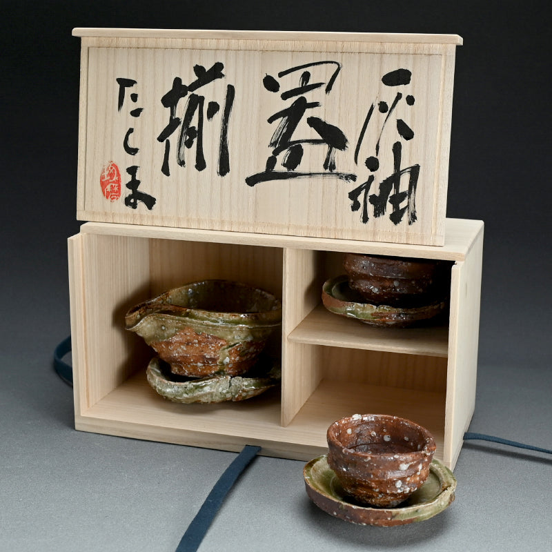 Ash Glazed Boxed Sake Set ー村越 琢磨 “灰釉 盃揃”
