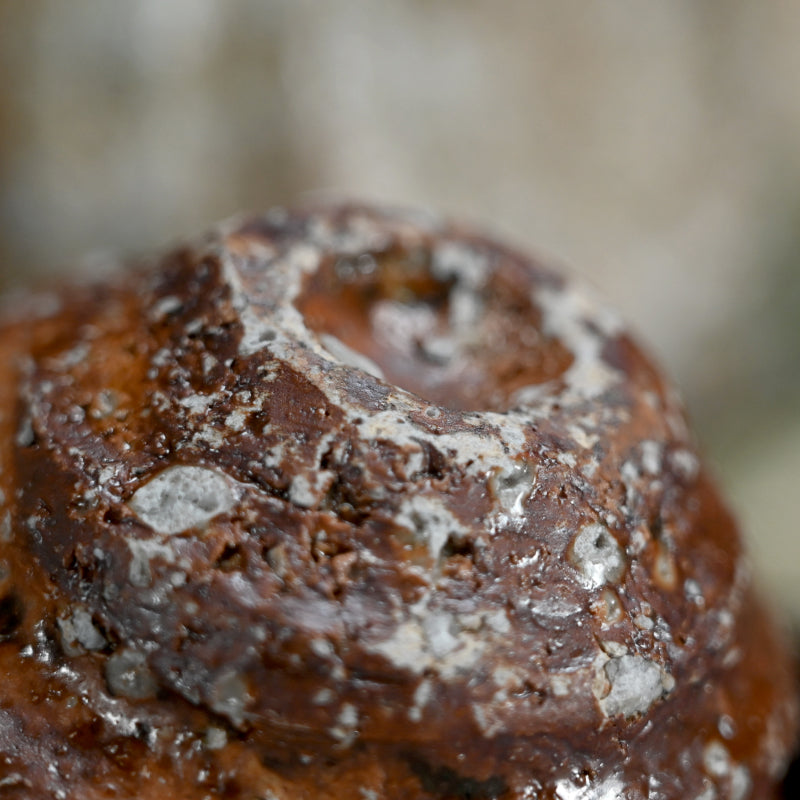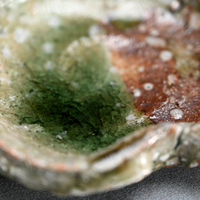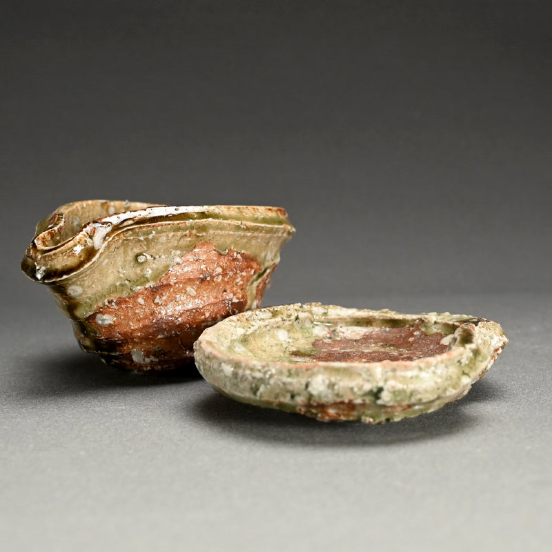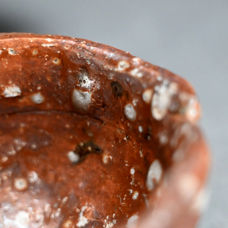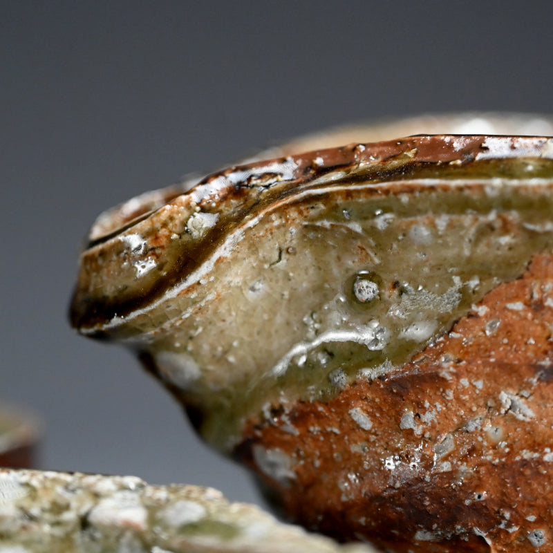 Murakoshi Takuma is one of those enigmas who simply lives to work with clay. He does not seek to make a living through pottery, but through his primal approach has earned a following which keeps his work in high demand. He was born in Aichi prefecture in 1954 and began his stroll down the pottery path in 1980 under the tutelage of Kyoto potter Umehara Takehira. Favoring very rough Shigaraki glaze, he established his own kiln in 1997 in the Kiyomizu pottery district of Kyoto, then moved to Nagaoka in 2002. Although eschewing the world of competitive exhibitions, he has been picked up by many of Japan’s preeminent galleries, including private exhibitions at the prestigious Kuroda Toen of Tokyo’s Ginza District.