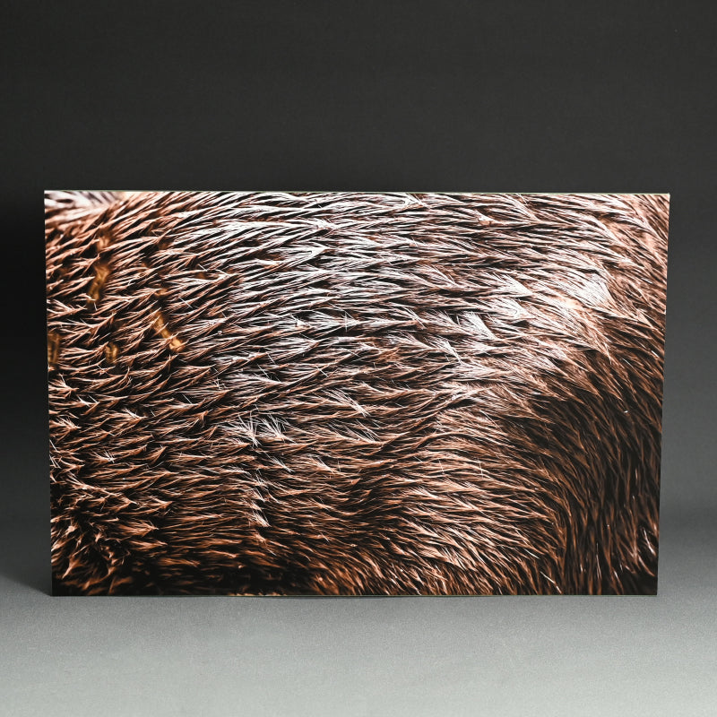 An extreme photograph of an Asian Small Clawed Otter mounted as a hanging panel by Horitani Shoichi signed on back and numbered 1/15. It is 53.5 x 35.5 x 3 cm (21-1/2 x 14 x 1 inches) and is in perfect condition, mounted on a wooden panel elevated from the wall.