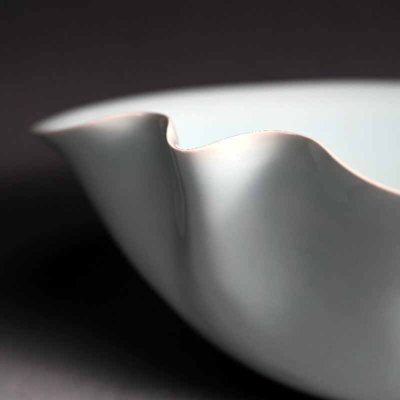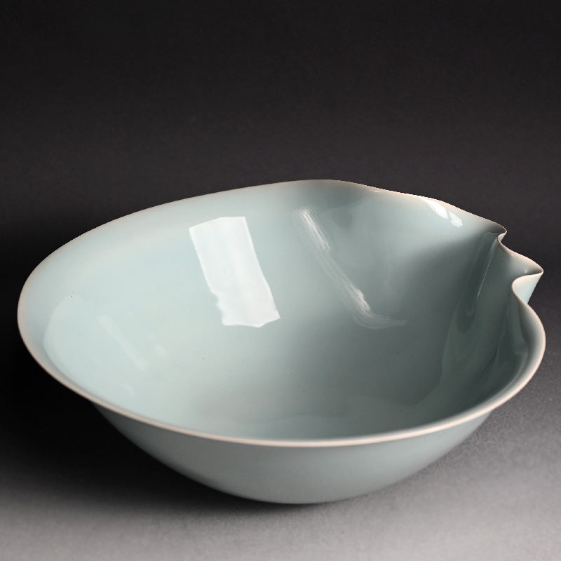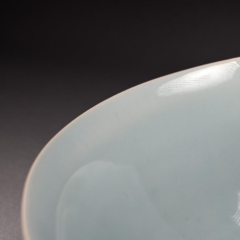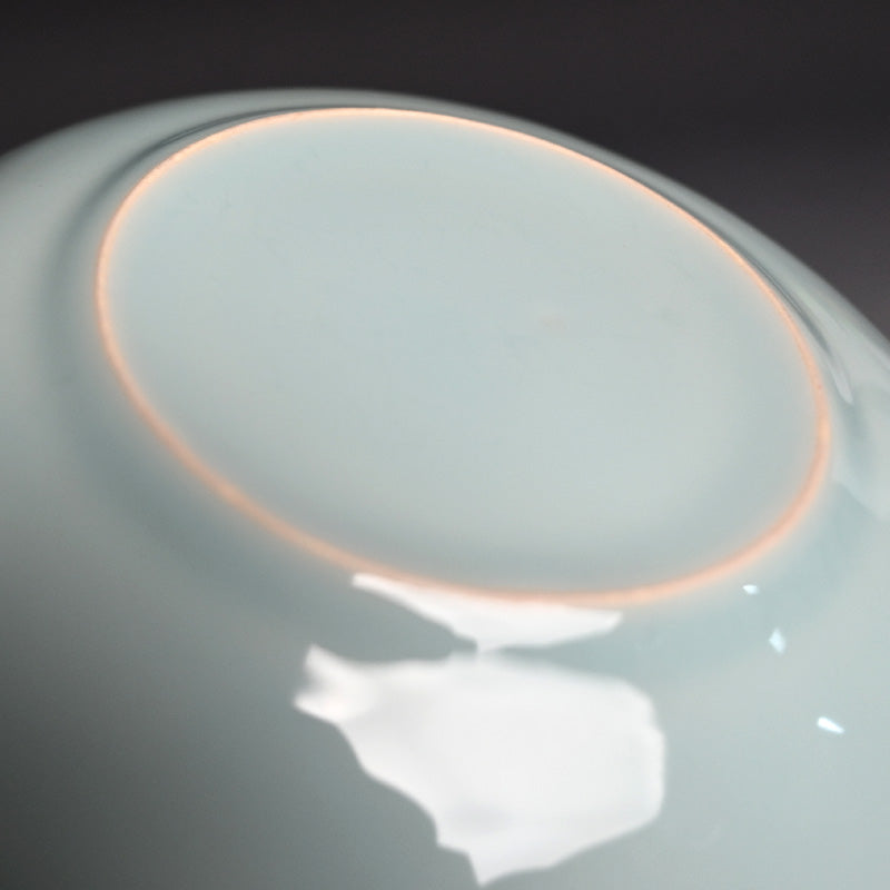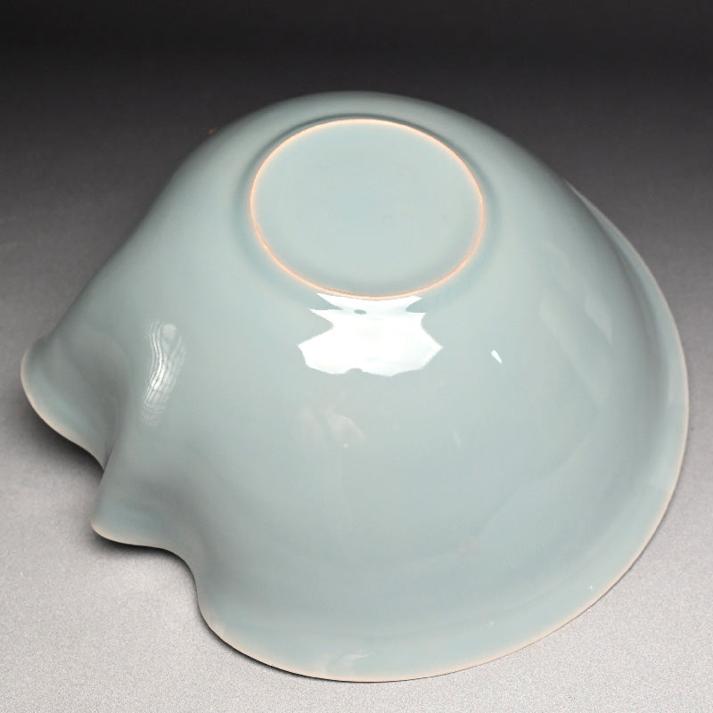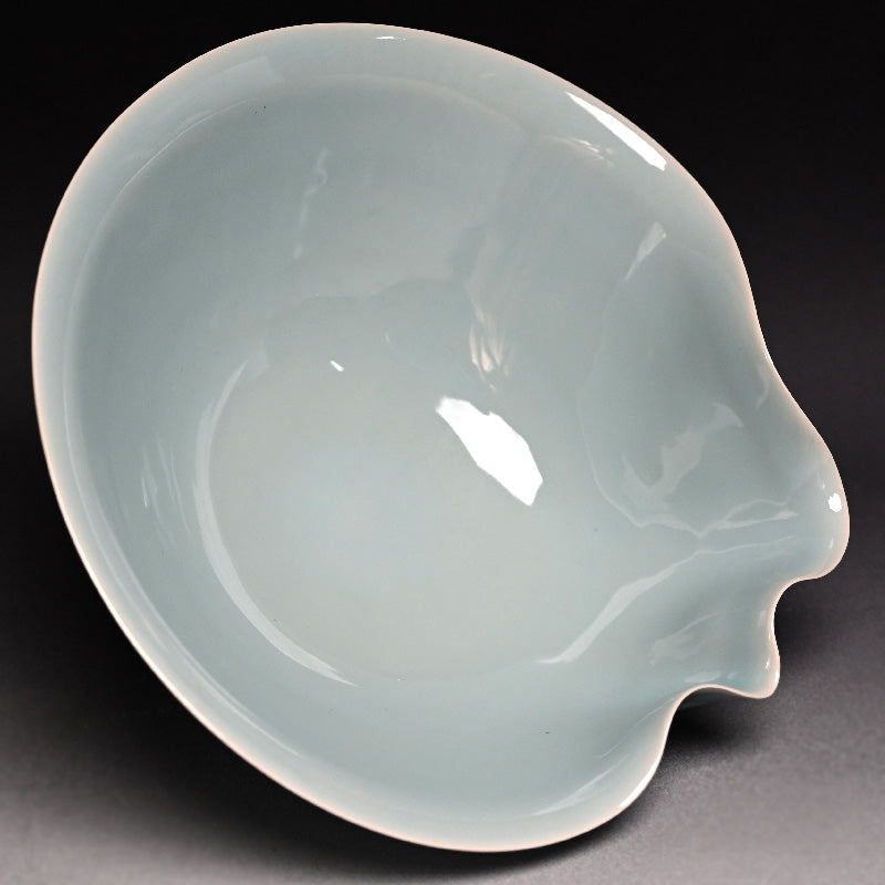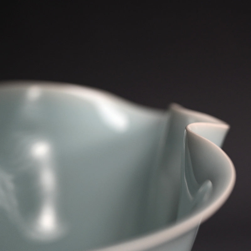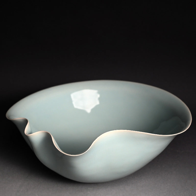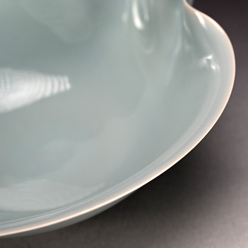 Kawase Shinobu was born in Oiso, Kanagawa Prefecture in 1950, heir to a family tradition of potting. His grandfather and father were Kawase Chikushun I and II respectively, masters of Chinese based ceramic styles. He began working with his father, and first came to public attention with his acceptance into the 1969 Nihon Dentō Kōgei Shinsakuten (National Traditional Crafts Exhibition for New Works). This was followed by acceptance into the 1974 Nihon Dentō Kogeiten (National Traditional Crafts Exhibition), at both of which he exhibited frequently. In 1980 he was selected for the Japan Ceramics Society Exhibition and was awarded there the following year. In 1983 his work was selected for the Japanese Ceramics Today exhibition at the Smithsonian Institution, Washington D.C. and the Victoria & Albert Museum, London. From then his works have been exhibited throughout the globe and he is regarded as Japan’s most outstanding celadon artist working with the traditions of the Tang and Song dynasties. With his exquisite technique, organic forms and pristine glazes, he has developed a unique style that is both traditional and challenging and it is this fusion of contemporary and tradition which draws droves to his art. Work is held in the Victoria and Albert Museum (London), New York Metropolitan Museum of Art, San Francisco Asian Art Museum, Art Institute of Chicago, Minneapolis Institute of Arts, Cincinnati Art Museum, Denver Art Museum, Brooklyn, Birmingham Cleveland, New Orleans, Philadelphia and Saint Louis Museums of Art among others. There is a plethora of information available on this innovative artist, including: Japanese Ceramics Today: Masterworks from the Kikuchi Collection, (Tsuji, Tomo, Hayashiya, 1983), Modern Japanese Ceramics in American Collections (Frederick Baekeland and Robert Moes, 1993), Quiet Clarity “RIN” Beauty in Contemporary Ceramics (1996), Contemporary Clay: Japanese Ceramics for the New Century (Joe Earle, 2005), The Betsy and Robert Feinberg Collection: Japanese Ceramics for the Twenty first Century (Mintz, 2014), and or Into the Fold: Contemporary Japanese Ceramics from the Horvitz Collection (Harn Museum, 2015)