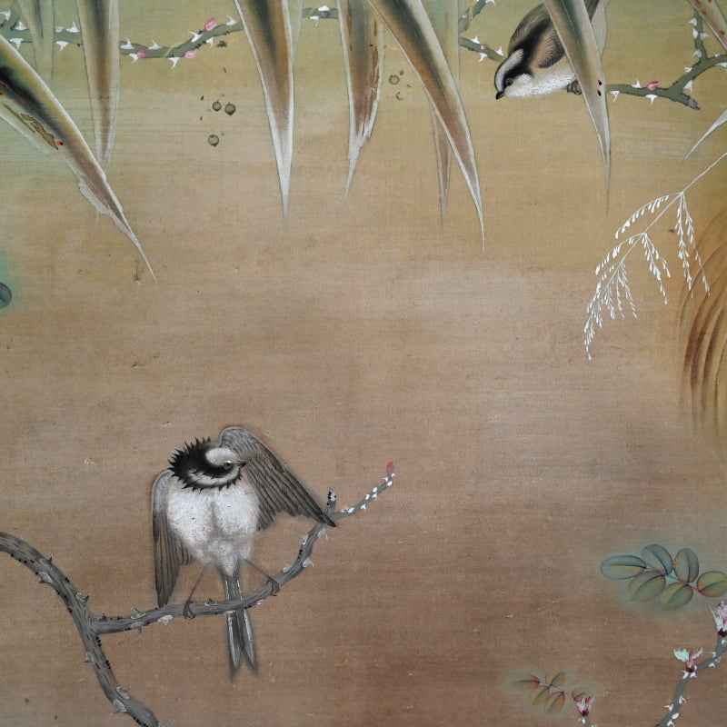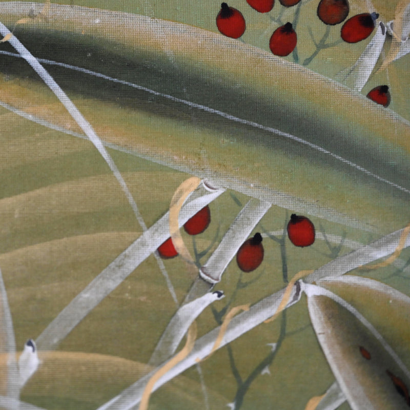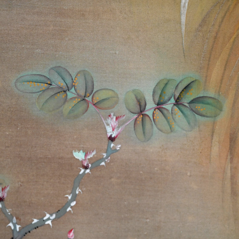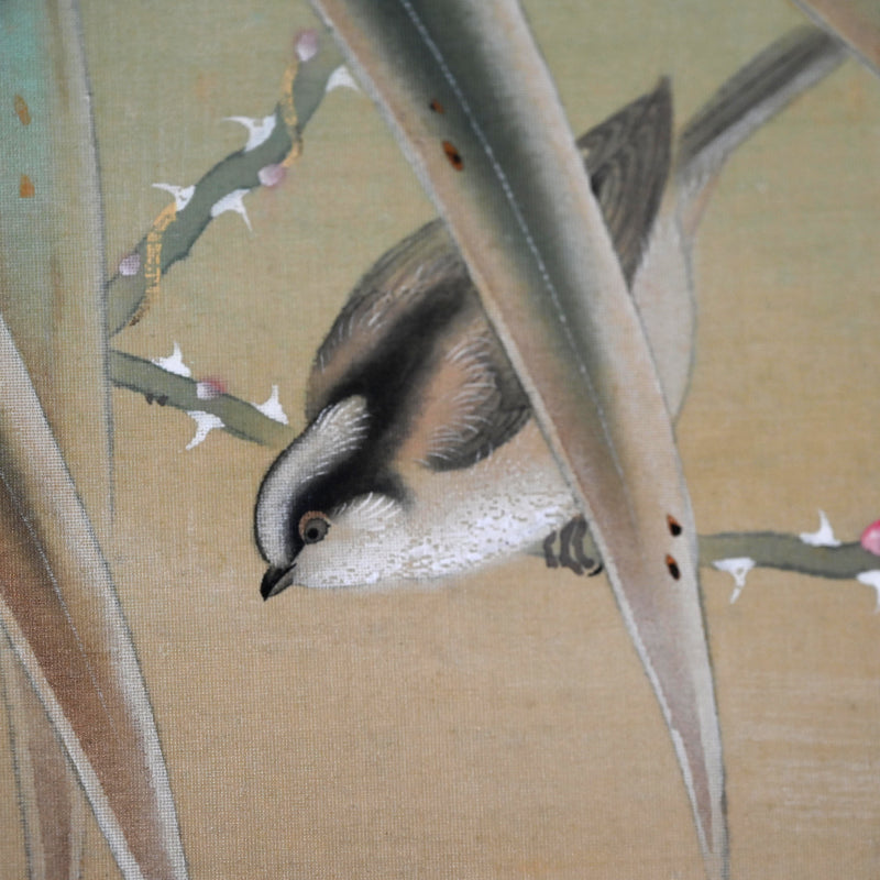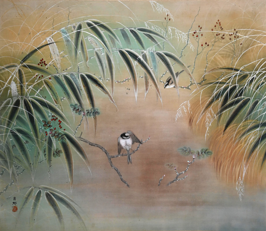 Uehara Gekkyo was born in 1906 in Kanagawa Prefecture, adjacent to Tokyo, and studied under Kawasaki Kotora. He was exhibited at the 12th Teiten (1931) National Exhibition. He resided in Tokyos Suginami area, and was best remembered for his dreamlike interpretations of Bird and Flower (Kacho) paintings.