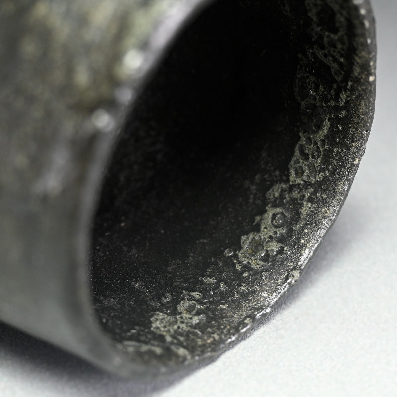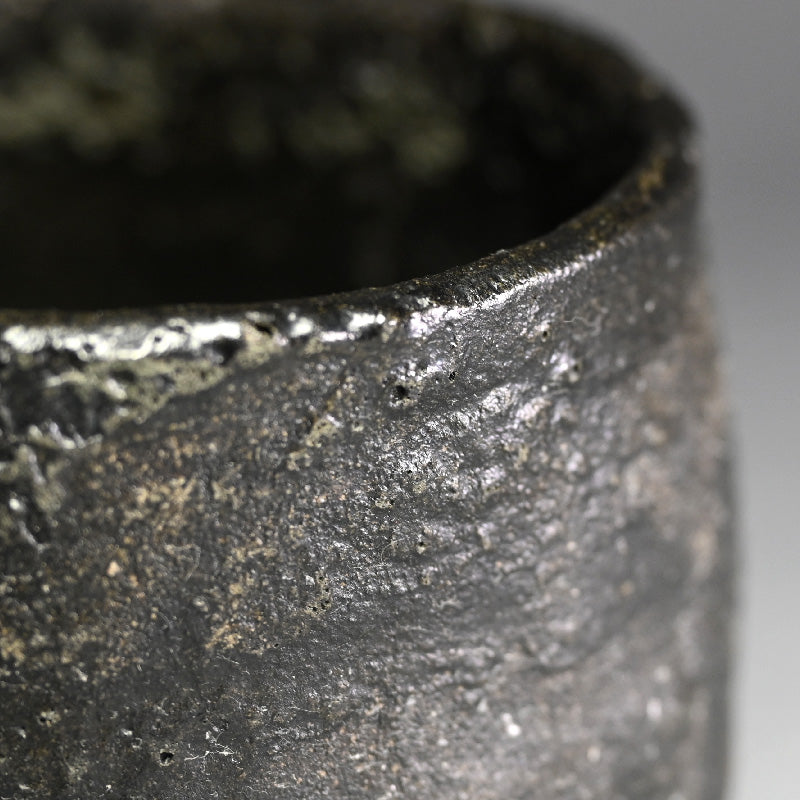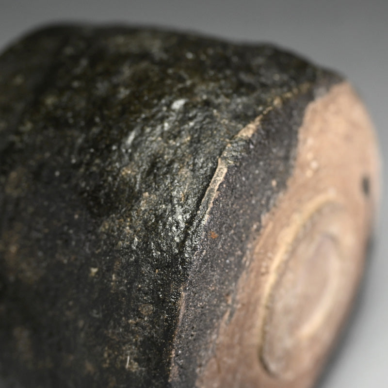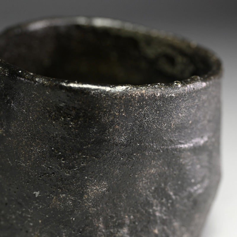 Ohmae Satoru was born in Osaka in 1972. He began decorating Kenzan style pottery in Kobe in 1991 with his brother. It was in 1994 he began making Nanban style unglazed pottery. His first solo exhibition was held in Osaka in 1999, and he moved to Shigaraki in 2001 where he began working on Iga and Shigaraki style wood-fired pottery and at the same time began holding solo exhibitions nationwide. He built a fully underground anagama kiln in 2003 but became interested in glazed pottery in 2005 and began creating white porcelain and Karatsu ware. In 2007, he was attracted to Korean pottery from the Joseon Dynasty and started experimenting with Ido tea bowls and persimmon calyx tea bowls using anagama kiln firing techniques. After absorbing many styles, he reached a turning point in 2010, when he moved to Awaji Island and built a semi-underground anagama kiln and a raku kiln. He started making black raku ware. In 2016, he began using clay from Awaji Island to make white raku ware.