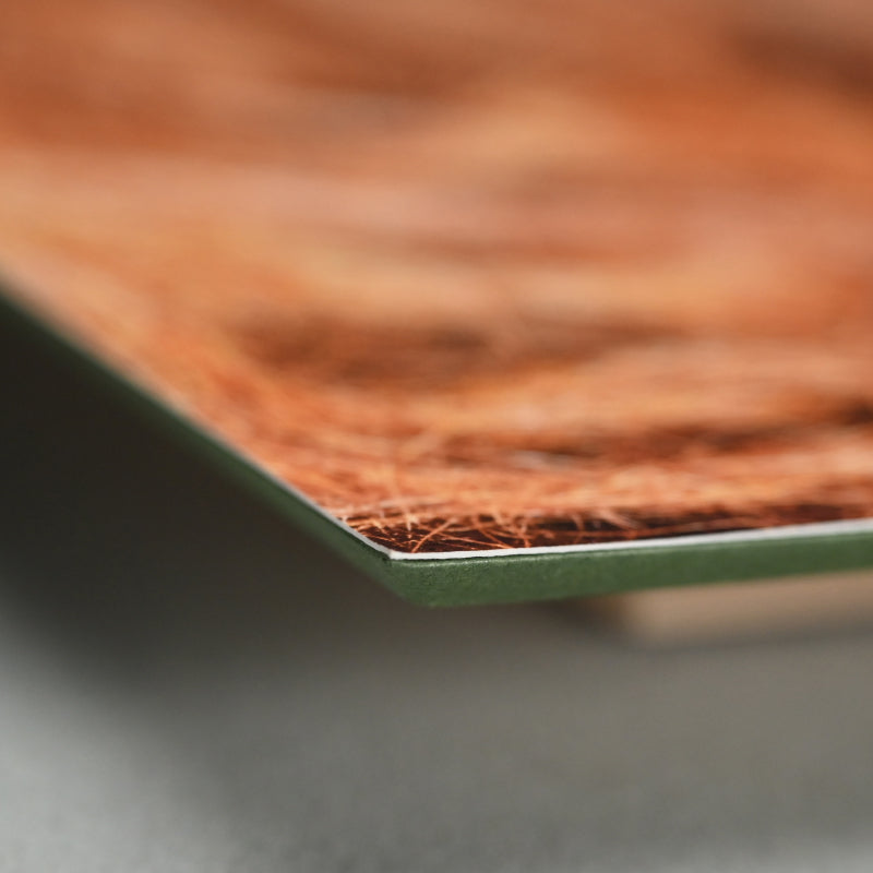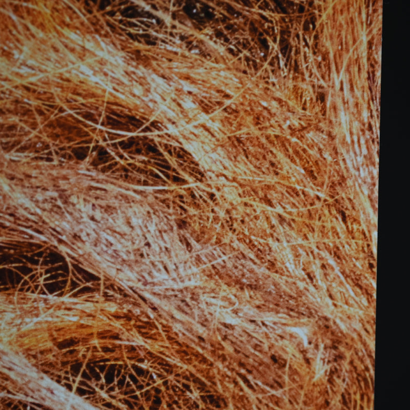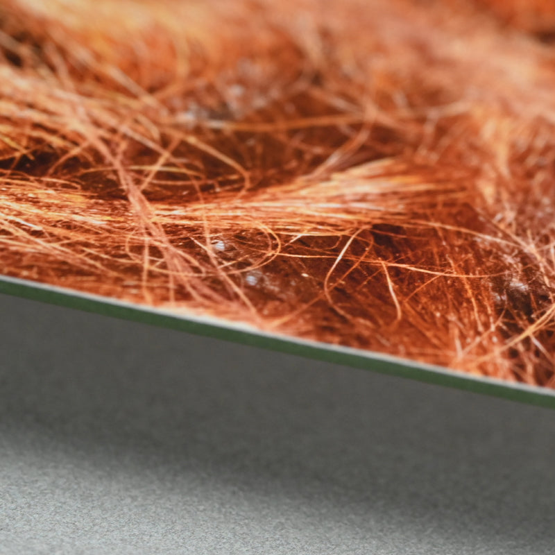 An extreme photograph of a Borneo Orangutan mounted as a hanging panel by Horitani Shoichi signed on back and numbered 1/15. It is 36.5 x 54.5 x 3 cm (14-1/2 x 21-3/4 x 1 inches) and is in perfect condition, mounted on a wooden panel elevated from the wall.
