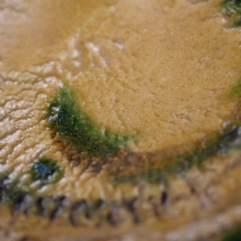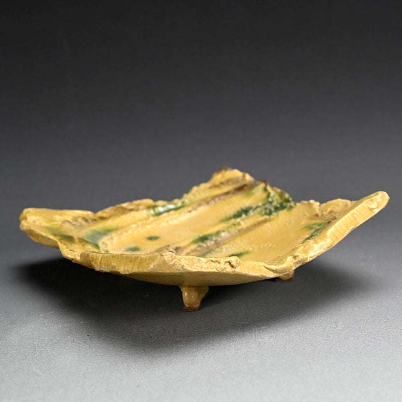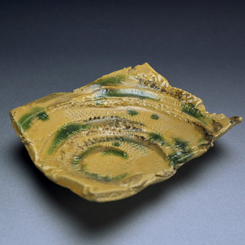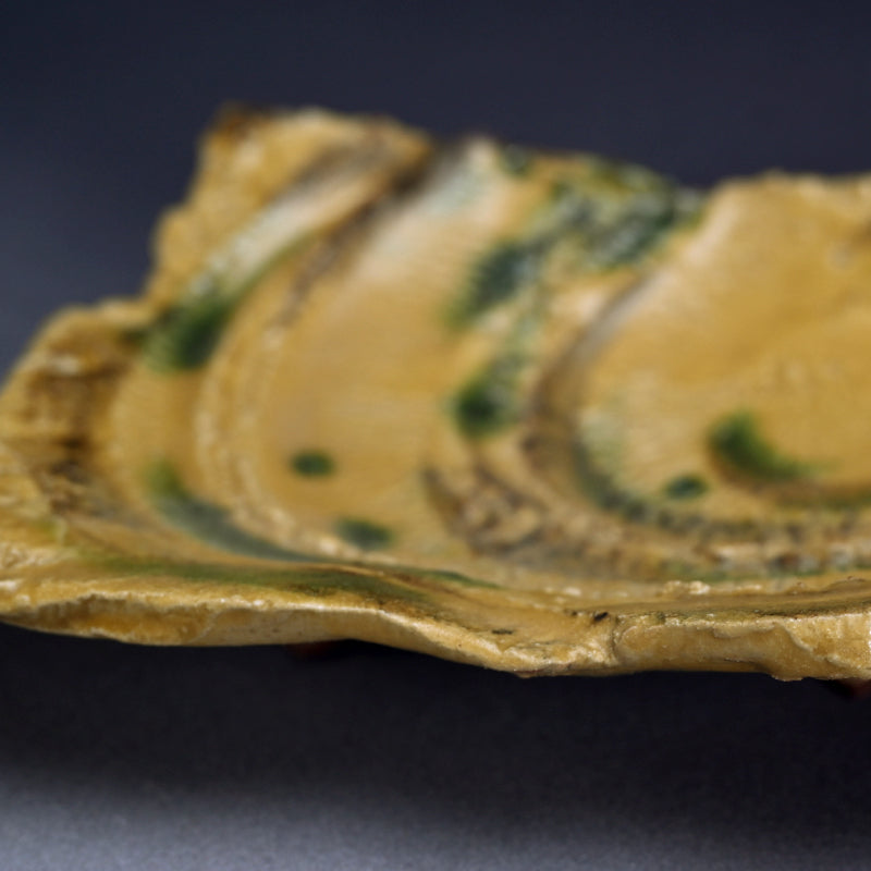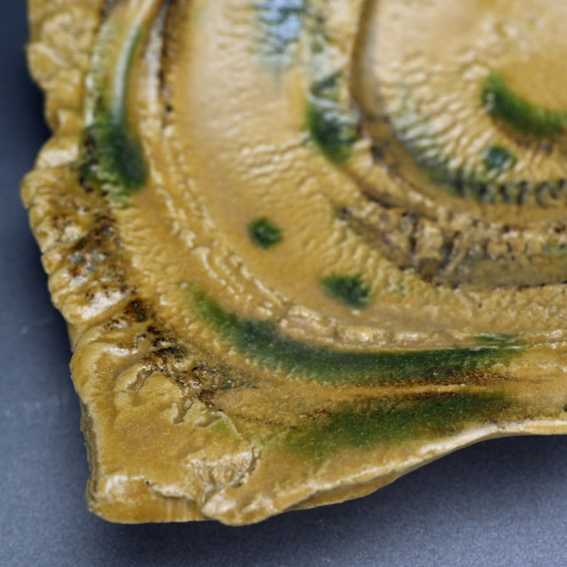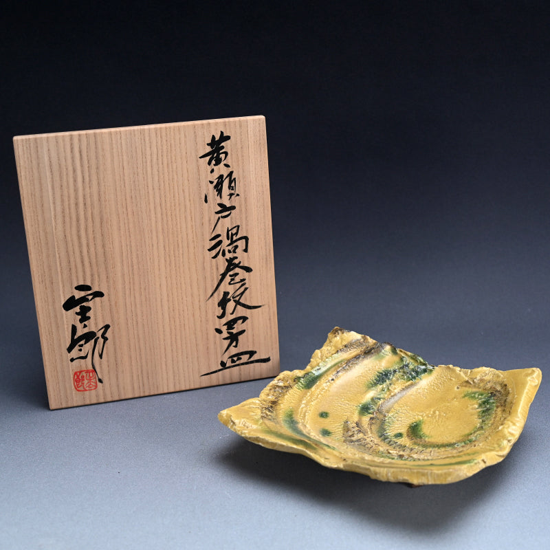 Brilliant Yellow Glazed Swirling Dish ―"黄瀬戸渦巻紋四方皿"