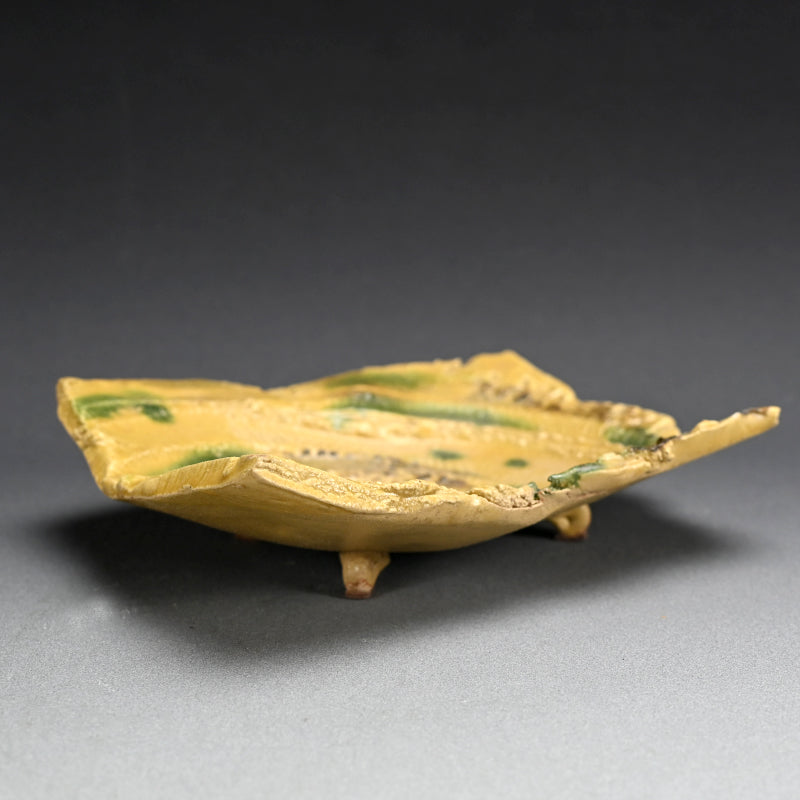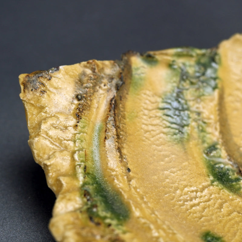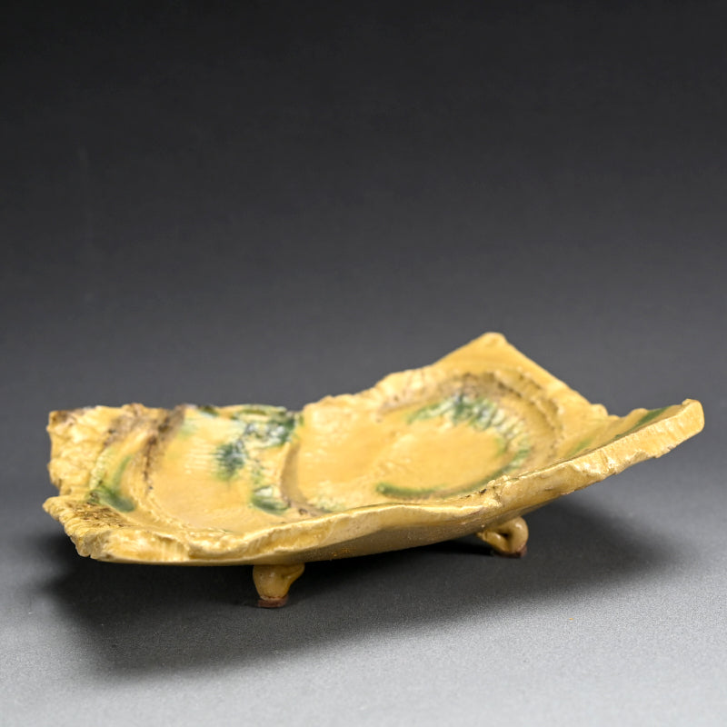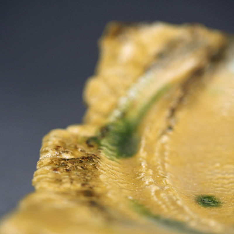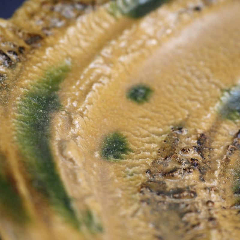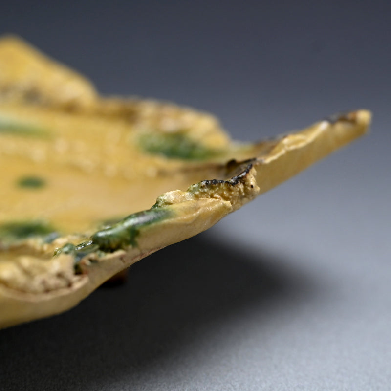 Brilliant Yellow Glazed Swirling Dish ―"黄瀬戸渦巻紋四方皿"