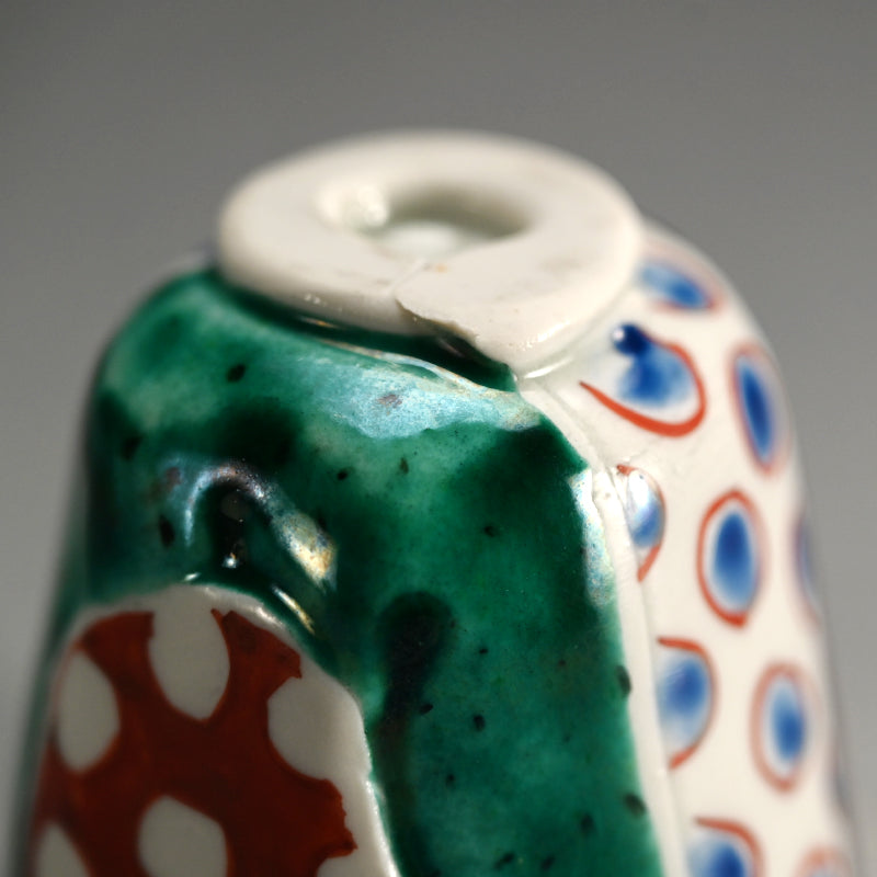 Matsuda Yuriko was born in Ashiya, Hyōgō Prefecture in 1943nd lives and works in Oshino, Yamanashi Prefecture. Yuriko is an avid exhibitor; it is a wonder she has time to do any work at all. Both within Japan (Nihon Togei Ten, Gendai Togei Ten etc.) and without she has an impressive list of exhibitions in a host of countries. She received the Yagi Kazuo prize in 1986 among many others. According to the book “Touch Fire”, Many of the women artists included in this exhibition are independent innovators who work outside the constraints of Japanese ceramic traditions. However, several of the artists, including Matsuda Yuriko, continue to use traditional techniques with skills that rival, if not exceed, those of their predecessors, and in doing so they create new and challenging contemporary ceramic art. They reinterpret the traditional decorative technique for porcelain vessels, called iro-e over-glaze enameling, and transposes its motifs onto nonfunctional objects. Her beautifully enameled iro-e porcelain sculptures are witty odes to two favorite subjects: the female body and Mount Fuji. For more information on this artist and examples of her work see the books Contemporary Japanese Ceramics, Fired with Passion by Beatrice Chang and Samuel Lurie. Also see Contemporary Clay, Japanese Ceramics for the New Century based on the Museum of Fine Arts Boston exhibition or Soaring Voices, Contemporary Japanese Women Ceramic Artists (2010). Her work is also currently on tour with the Radical Clay Exhibition at the Art Institute of Chicago.