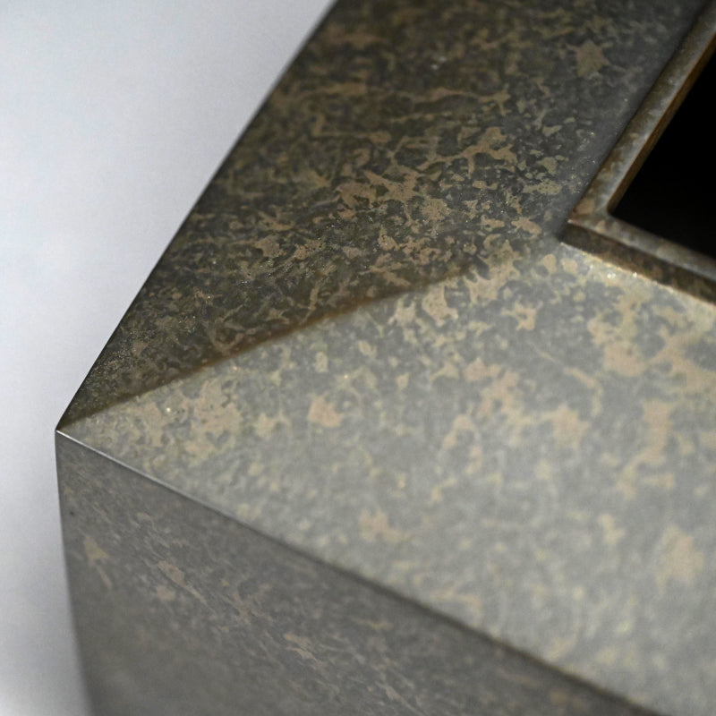 Bronze Vase, Exhibited 33rd Nihon Dento Kogeiten 1986 ー米田 美昭 “朧銀四方花器”