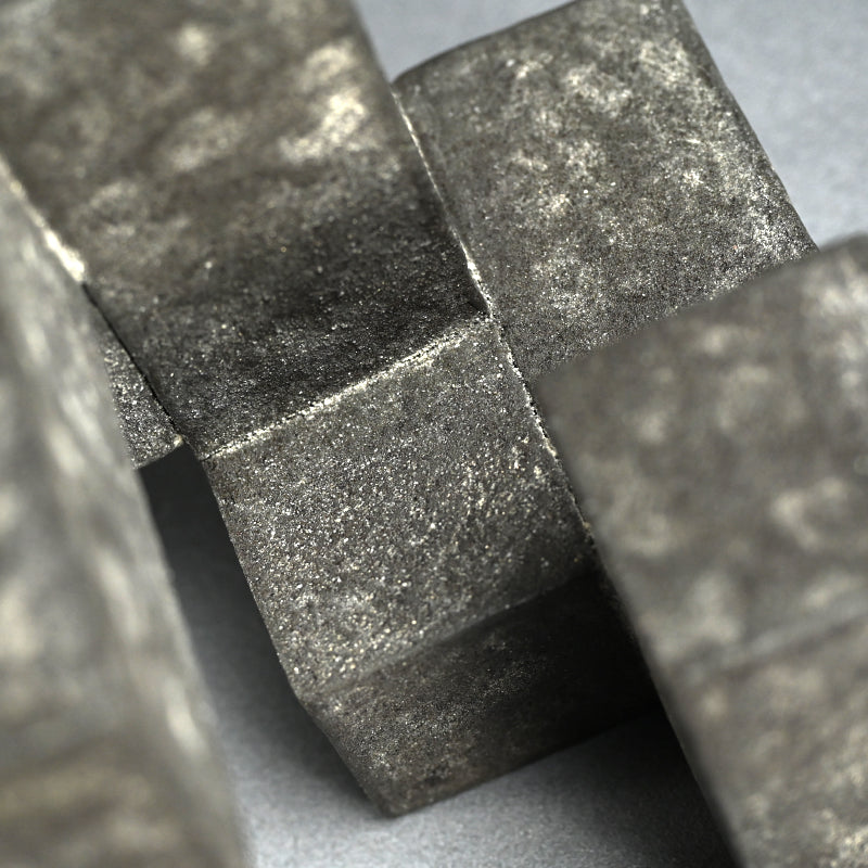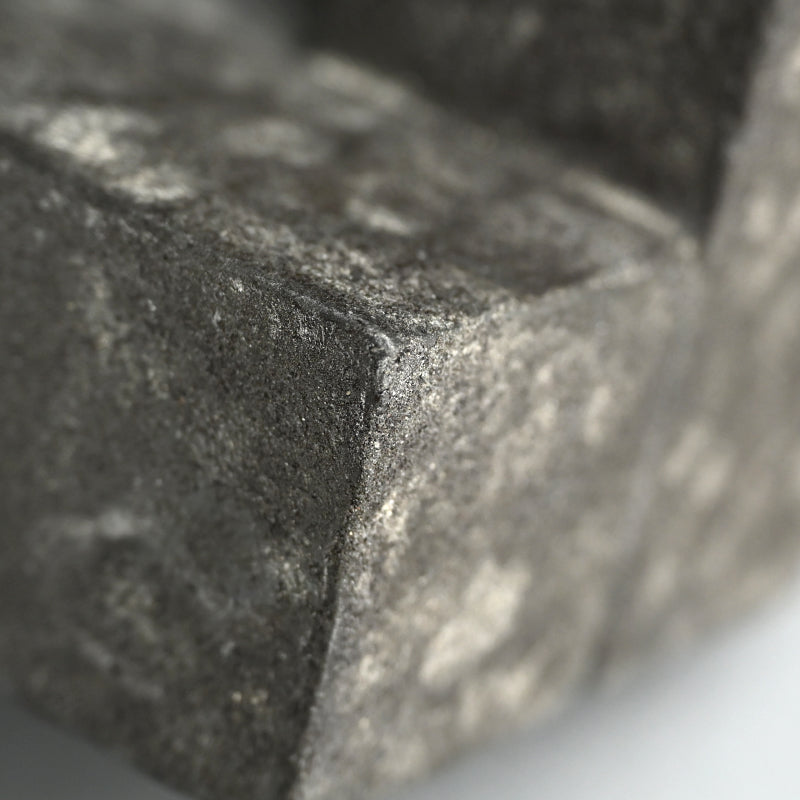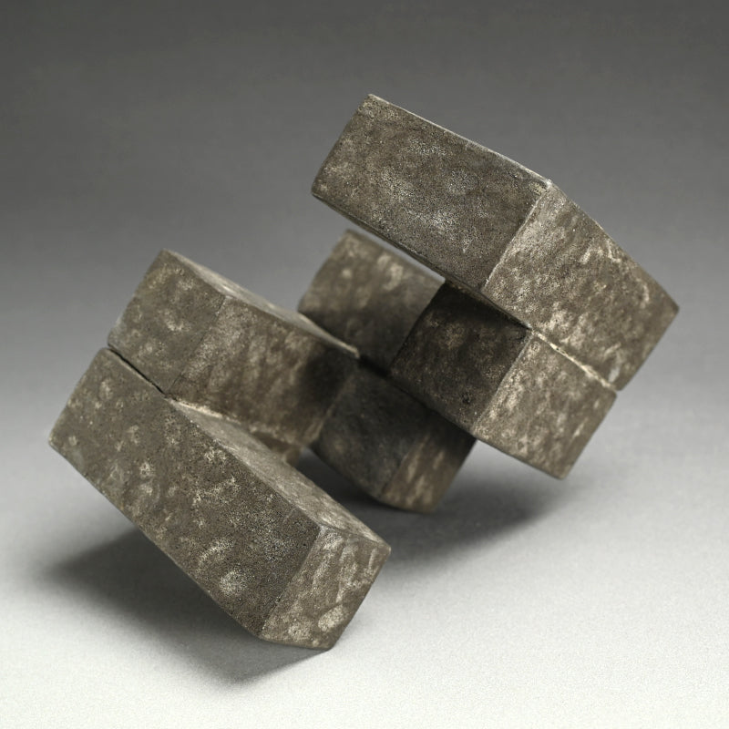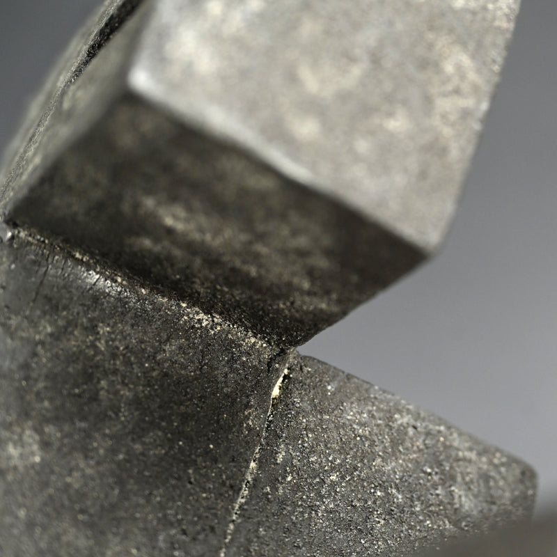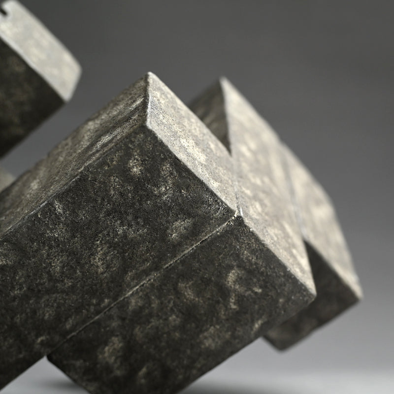 A black clay object of stacked blocks writhing like a snake by Takeuchi Kozo enclosed in the original signed wooden box titled Genseki Tan (Modern Ruins). It is 33 x 26 x 24 cm (13 x 10 x 9-3/4 inches) and is in perfect condition, directly from the artist. Through tatara molding, I draw inspiration from the grandeur and majestic presence of the Mayan ruins in Mexico, which I visited during my student days. This series resonates with the atmosphere of traditional Japanese houses, aiming to infuse overwhelming strength into my works.