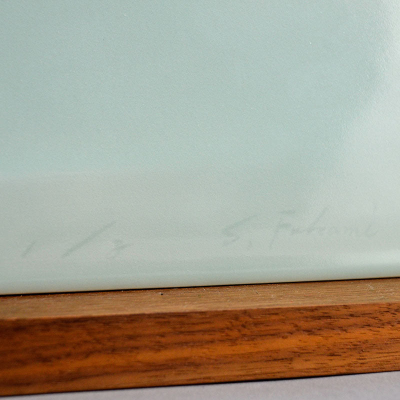 Fukami Sueharu is synonymous with seihakuji celadon. He has been displayed numerous times at the prestigious Nitten, Nihon Togei Ten (National Japanese Ceramic Exhibition) and Nihon Gendai Kogei Ten (National Japanese Modern Crafts Exhibition) among others. He is held in the Yale University Museum among others. For more information on this artist a quick web-search, or a look at the article highlighting his life in the March 2005 edition of Orientations Magazine will be enlightening. The list of museums holding his work is, in fact, much to long for this page, but includes the National Museums of Modern Art, Tokyo /Kyoto / and Osaka, the Metropolitan Museum of Art, NY, Brooklyn Museum, Museum of Fine Arts, Boston, Philadelphia St. Louis, Portland, Chicago, Minneapolis, Smithsonian, British Museum, Victoria & Albert Museum, Musée national de céramique, Sèvres, Musée des arts décoratifs, Paris, Hetjens Museum, Düsseldorf and the National Gallery of Australia among many others.