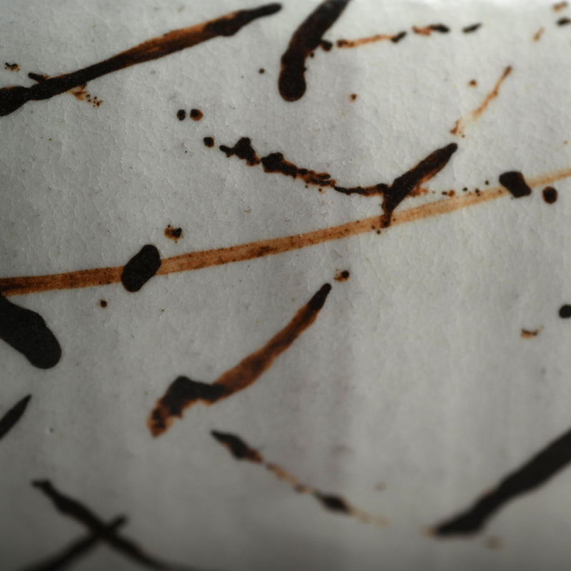 Yamada Hikaru (1924-2001), was born into the family of layman potter and priest Yamada Tetsu, and raised in Gifu after the family home was destroyed in the Great Kanto Earthquake. At the age of 20 he entered the Kyoto ceramics research facility, 15 years junior to those who had inspired the great Mingei movement at that same institution. Somehow escaping overseas service in the war, he met Yagi Kazuo in 1945, and the two formed an instant bond, founding a group for young potters the following year. Compounded by the austerity and poverty they faced as young artists in the immediate postwar, the group grew and along with Kumakura Junkichi, Suzuki Osamu and Yagi Kazuo formed the most influential post war ceramics organization, Sodeisha, as it was, in 1948. They eschewed public competition and espoused the ideas of art for arts sake, negating the ideas of the mingei movement, which stressed function over form. Together, members of the group worked tirelessly to promote modern Japanese pottery for the next several decades both within and outside of Japan. Held in innumerable public and private collections including the National Museum of Modern Art, both Tokyo and Kyoto, Museum of New South Wales and the Victoria Albert.