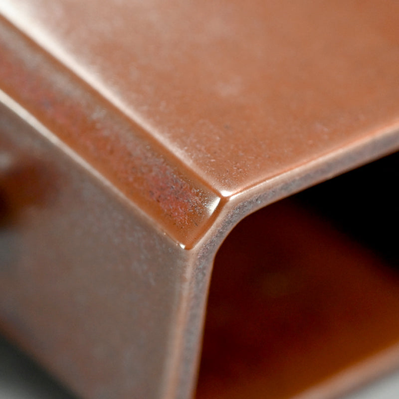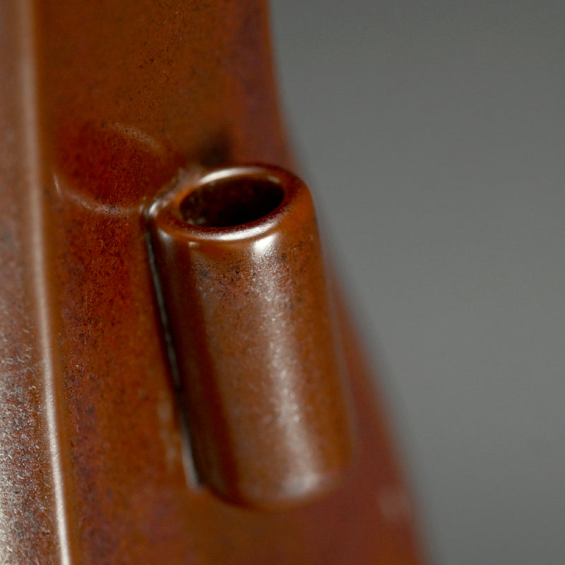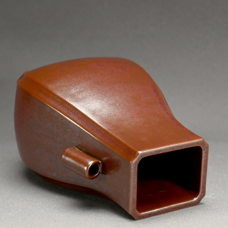A paradigmatic example of this shape by important female artist Suwa Sozan II enclosed in the original signed wooden box titled Shokusha-yu Oi-mimi Hanaire. It is 15 x 13 x 25.5 cm (6 x 5 x 10 inches) and is in excellent condition.