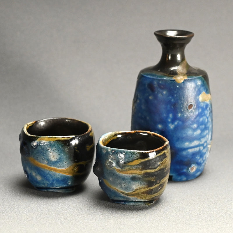 Contemporary Ao-Bizen Sake Set ー馬場 隆志 “窯変蒼酒器揃”