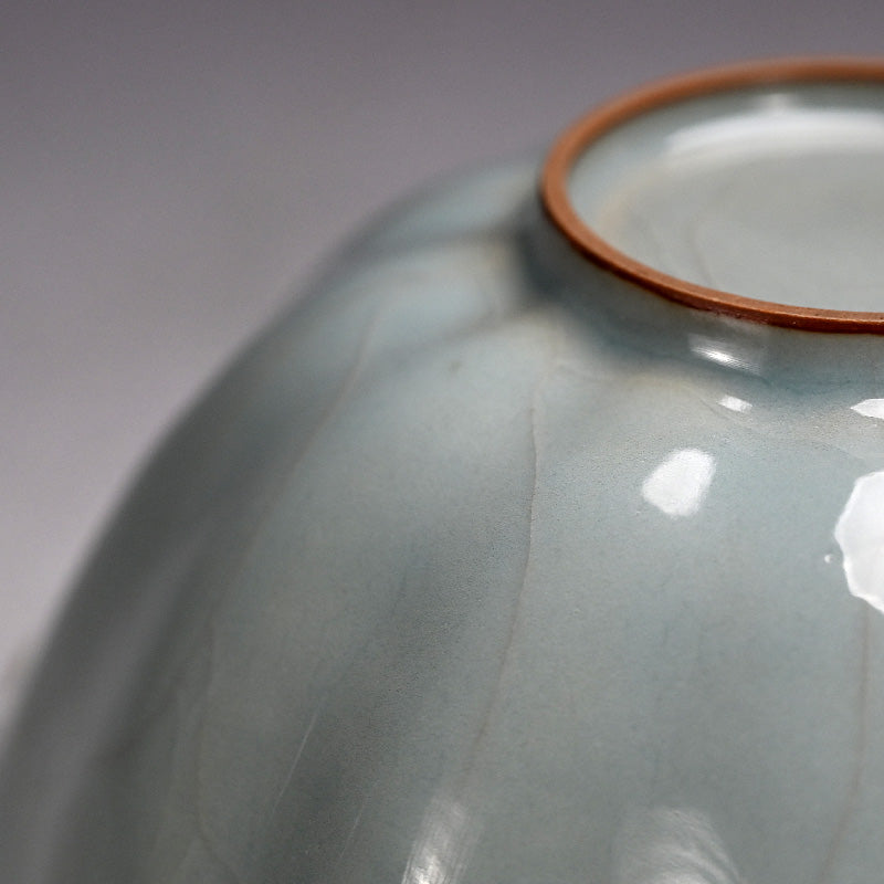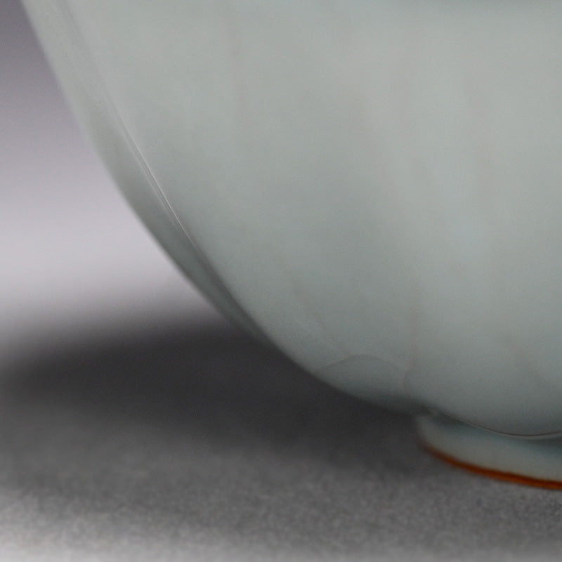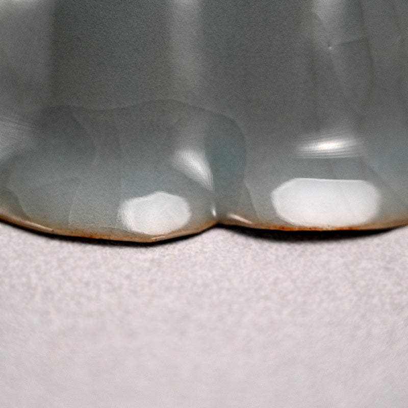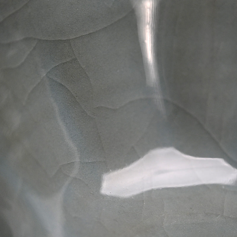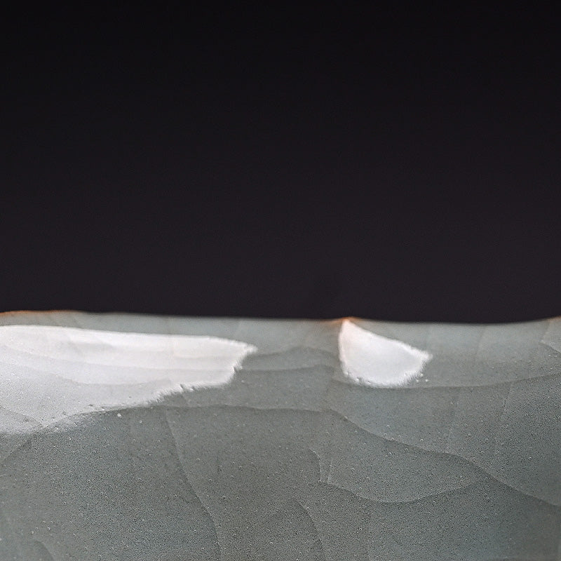 Kawase Shinobu was born in Oiso, Kanagawa Prefecture in 1950, heir to a family tradition of potting. His grandfather and father were Kawase Chikushun I and II respectively, masters of Chinese based ceramic styles. He began working with his father, and first came to public attention with his acceptance into the 1969 Nihon Dentō Kōgei Shinsakuten (National Traditional Crafts Exhibition for New Works). This was followed by acceptance into the 1974 Nihon Dentō Kogeiten (National Traditional Crafts Exhibition), at both of which he exhibited frequently. In 1980 he was selected for the Japan Ceramics Society Exhibition and was awarded there the following year. In 1983 his work was selected for the Japanese Ceramics Today exhibition at the Smithsonian Institution, Washington D.C. and the Victoria & Albert Museum, London. From then his works have been exhibited throughout the globe and he is regarded as Japan’s most outstanding celadon artist working with the traditions of the Tang and Song dynasties. With his exquisite technique, organic forms and pristine glazes, he has developed a unique style that is both traditional and challenging and it is this fusion of contemporary and tradition which draws droves to his art. Work is held in the Victoria and Albert Museum (London), New York Metropolitan Museum of Art, San Francisco Asian Art Museum, Art Institute of Chicago, Minneapolis Institute of Arts, Cincinnati Art Museum, Denver Art Museum, Brooklyn, Birmingham Cleveland, New Orleans, Philadelphia and Saint Louis Museums of Art among others. There is a plethora of information available on this innovative artist, including: Japanese Ceramics Today: Masterworks from the Kikuchi Collection, (Tsuji, Tomo, Hayashiya, 1983), Modern Japanese Ceramics in American Collections (Frederick Baekeland and Robert Moes, 1993), Quiet Clarity “RIN” Beauty in Contemporary Ceramics (1996), Contemporary Clay: Japanese Ceramics for the New Century (Joe Earle, 2005), The Betsy and Robert Feinberg Collection: Japanese Ceramics for the Twenty first Century (Mintz, 2014), and or Into the Fold: Contemporary Japanese Ceramics from the Horvitz Collection (Harn Museum, 2015)