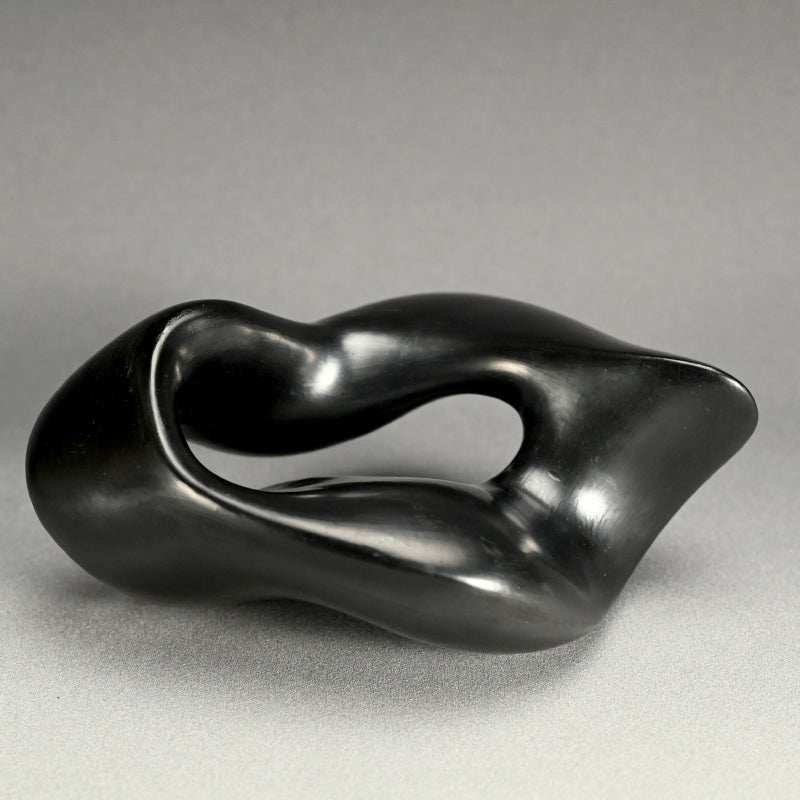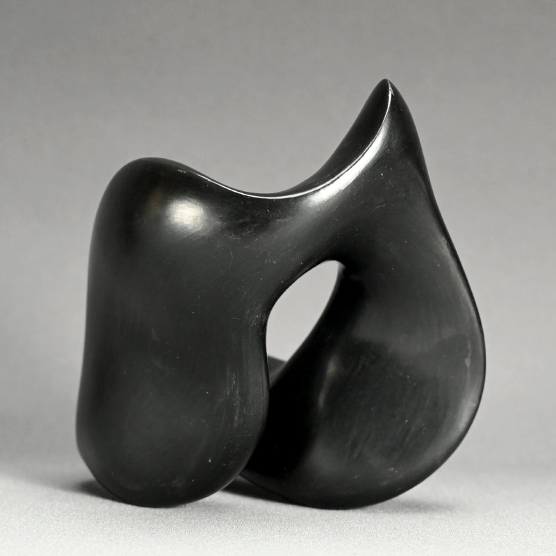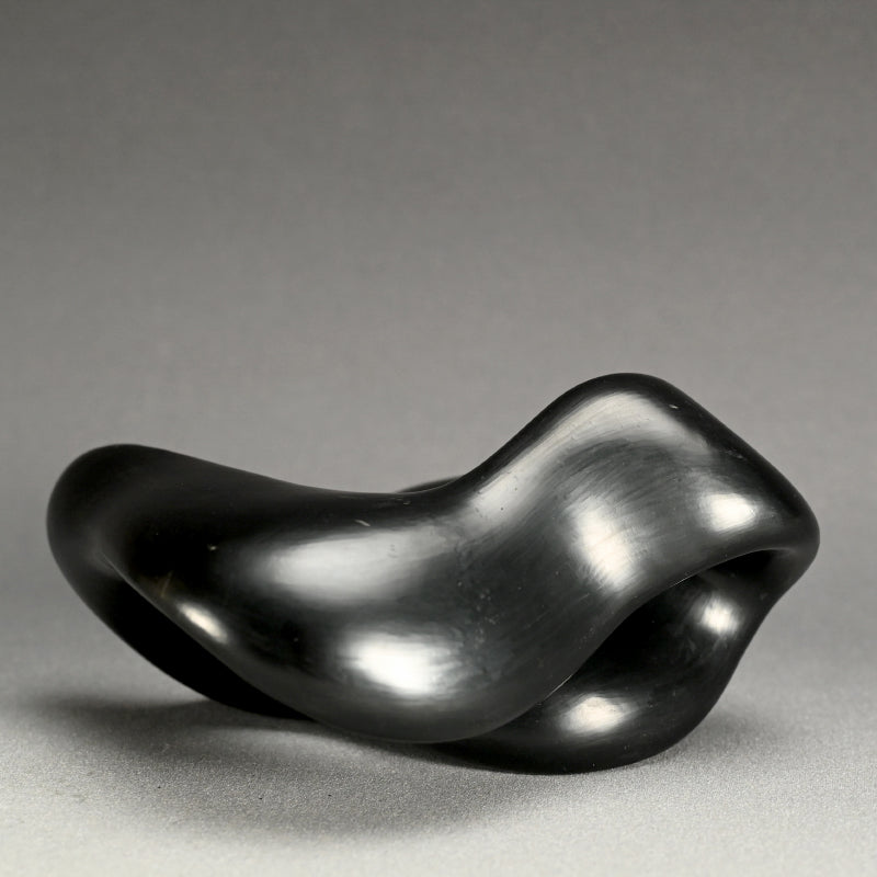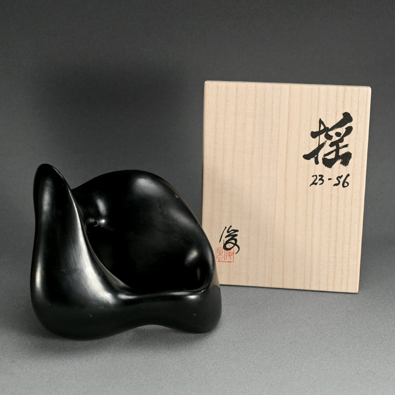 A striking black sculptural form by Imura Toshimi enclosed in the original signed wooden box titled Yo 23-S6 (Vibration 23-S6). It is 19.5 x 12 x 17 cm (8 x 5 x 7 inches) and is in perfect condition, directly from the artist.
