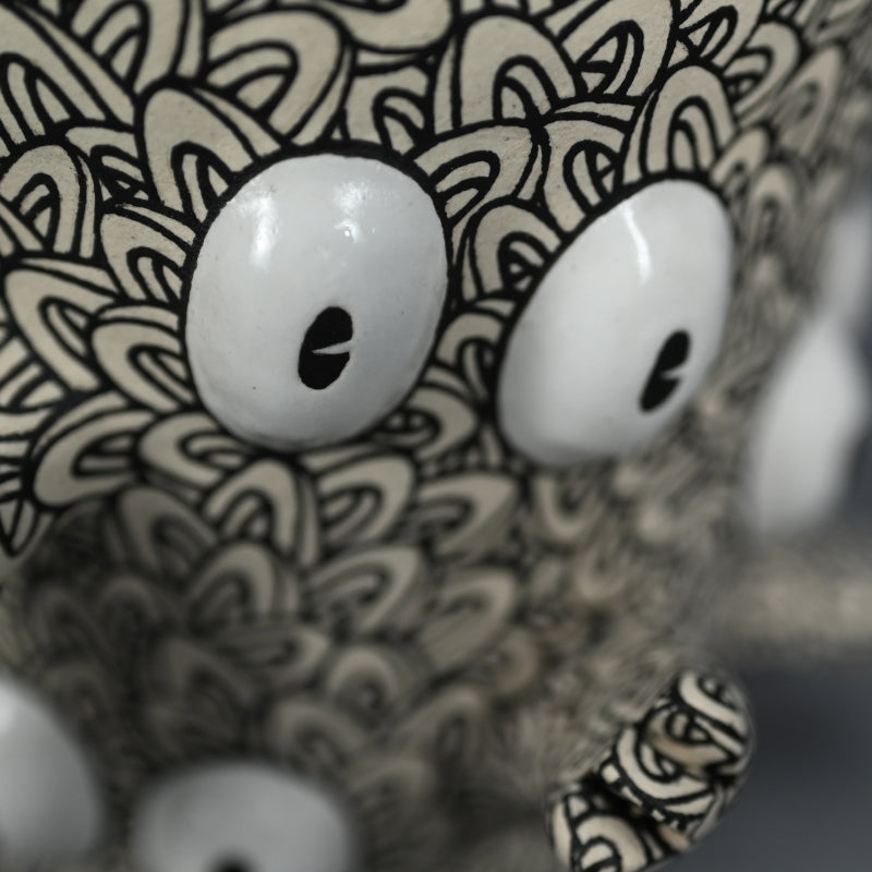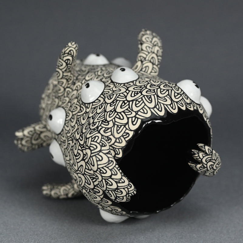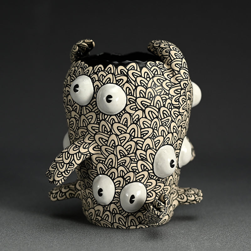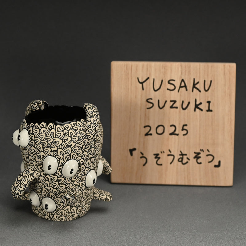 Suzuki Yusaku was born in Aichi prefecture in central Japan in 1991 and graduated the Nagoya Zokei University Ceramics Course in 2014. He started drawing in the latter half of his sophomore year in college and this practice became the foundation of his current artistic style as well as a key element of his work’s appeal. He holds both group and solo exhibitions across Japan.