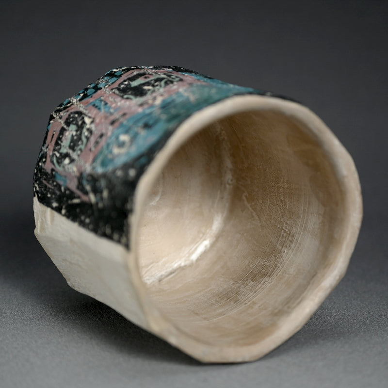 Isezaki Youtarou was born in Bizen, son of a traditional potter known for tea ware, in 1995. He graduated Seika University in Kyoto before enrolling at the the Tajimi Design Institute. He makes use of ancient inherited techniques, modern graphics, and a century of technological innovation in transfer ware. The works are hand-built, slabbed and trimmed then bisk fired. He then creates a print transfer which is applied to the low-fired surface, and further burnishes it before glazing and re-firing. As a rising artist, he actively participates in exhibitions across Japan. Despite his young age, his work has been highly acclaimed, earning him the Newcomer’s Award at the Japan Traditional Craft Exhibition, Chugoku Branch in 2021. In 2023, he was recognized at the Contemporary Ceramics Hagi Grand Prize Exhibition VI, and in 2024, his work was selected for both the Contemporary Tea Ceramics Exhibition and the Bizen Biennale.