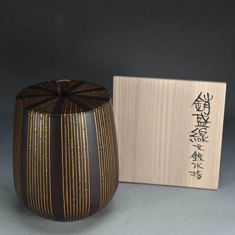 Contemporary Gold Inlay Mizusashi ー鹿島 和生 “銷盛線文鉄水指”