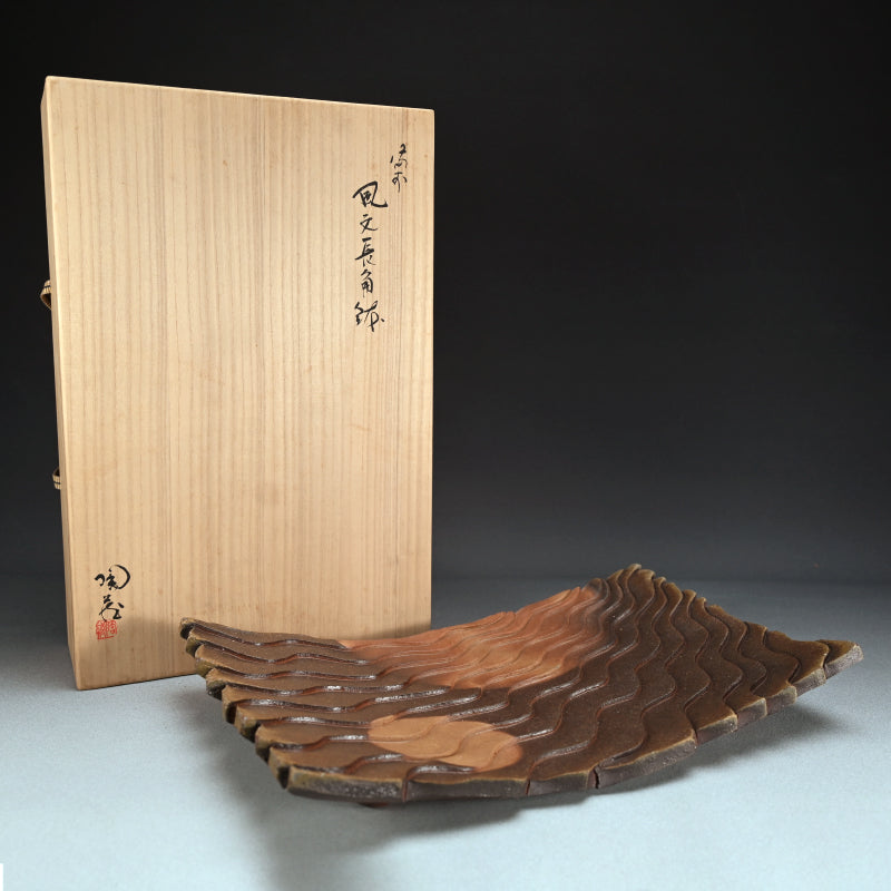 Contemporary Rippling Bizen Platter ー小西陶蔵 "備前 風文直角鉢"