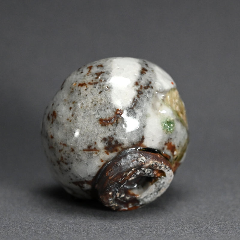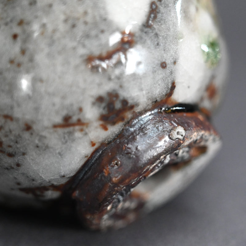 Murakoshi Takuma is one of those enigmas who simply lives to work with clay. He does not seek to make a living through pottery, but through his primal approach has earned a following which keeps his work in high demand. He was born in Aichi prefecture in 1954 and began his stroll down the pottery path in 1980 under the tutelage of Kyoto potter Umehara Takehira. Favoring very rough Shigaraki glaze, he established his own kiln in 1997 in the Kiyomizu pottery district of Kyoto, then moved to Nagaoka in 2002. Although eschewing the world of competitive exhibitions, he has been picked up by many of Japan’s preeminent galleries, including private exhibitions at the prestigious Kuroda Toen of Tokyo’s Ginza District.