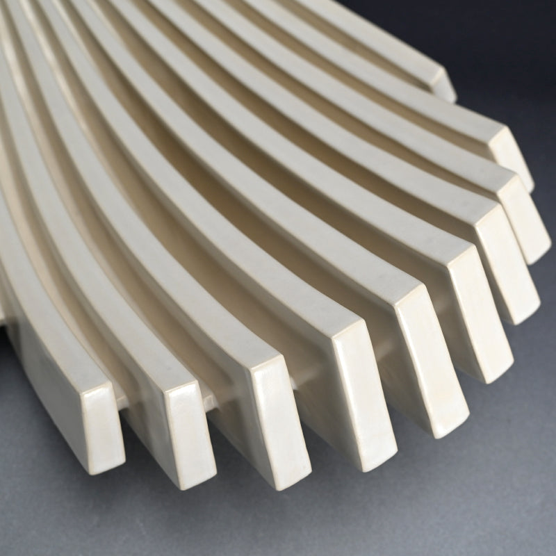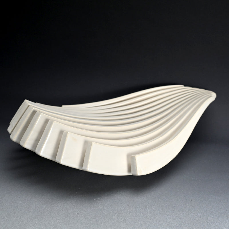 An unusual white glazed work of wavering parallel veins by Sugitani Keizo titled Flow. It is 63 x 41.5 x 17.5 cm and in perfect condition, directly from the artist.
