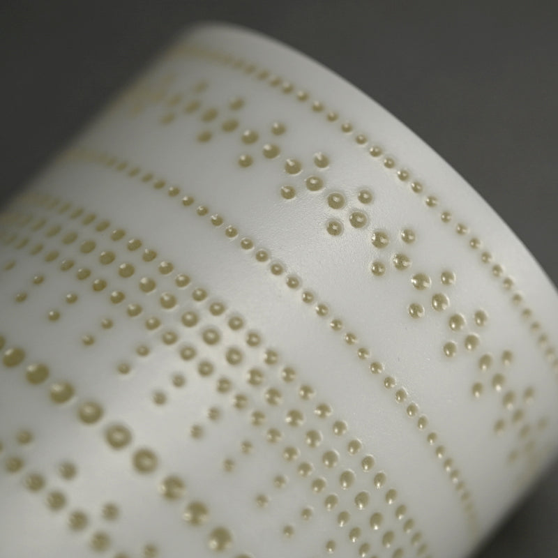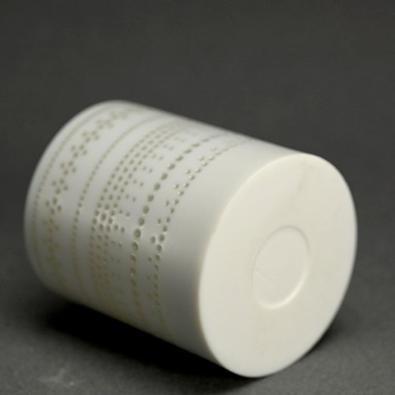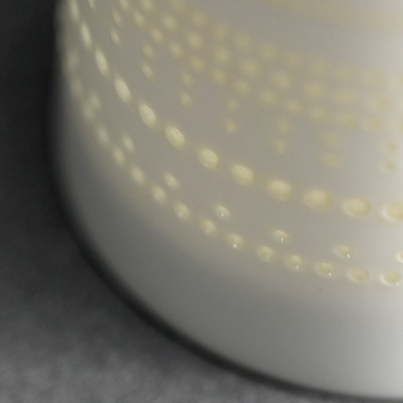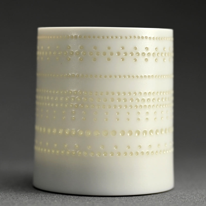 An exquisite cup of light by Niisato Akio enclosed in the original signed wooden box titled Hi-Tsutsu-ki. It is 6.5 cm (2-1/2 inches) diameter, 7.5 cm (3 inches) tall and in perfect condition, directly from the artist.