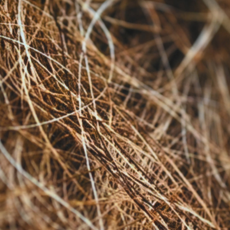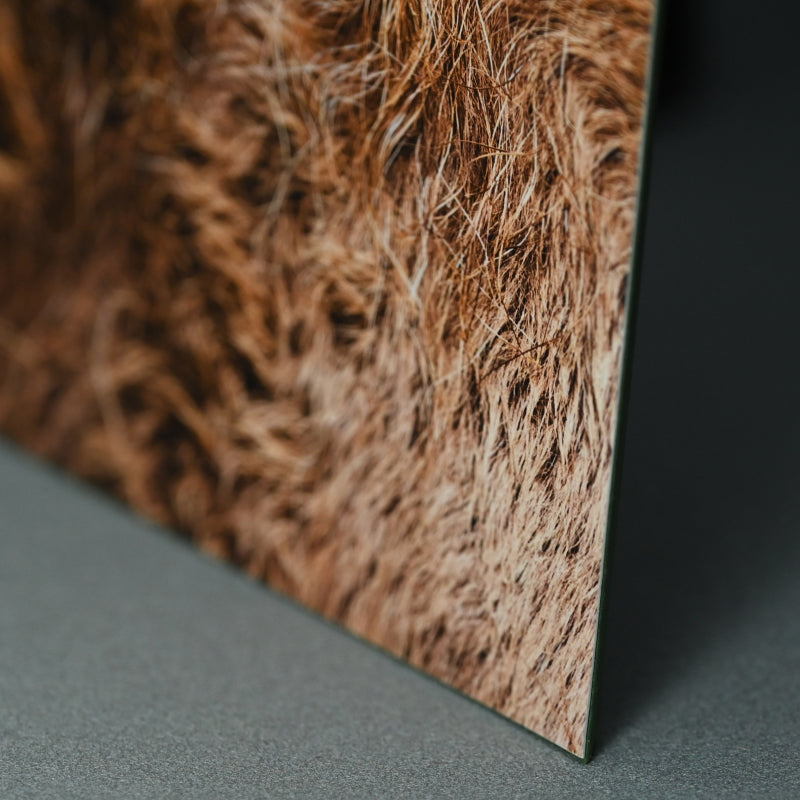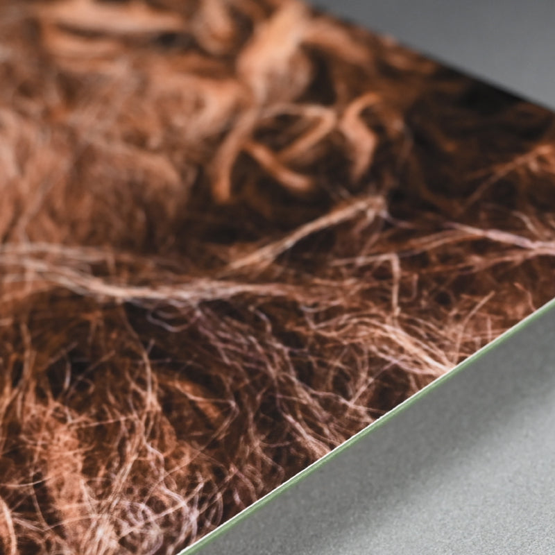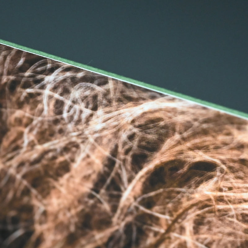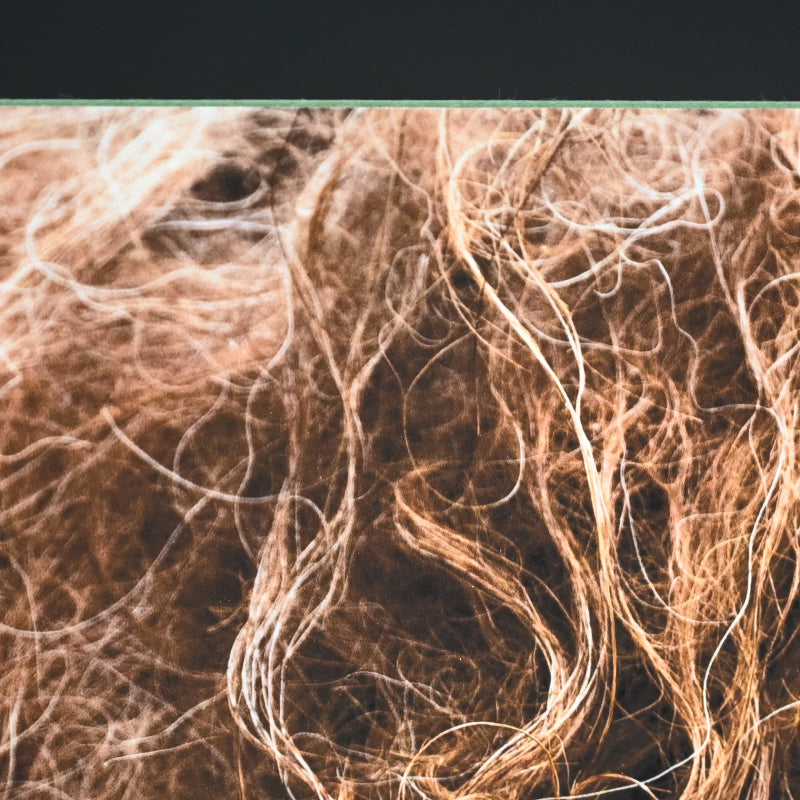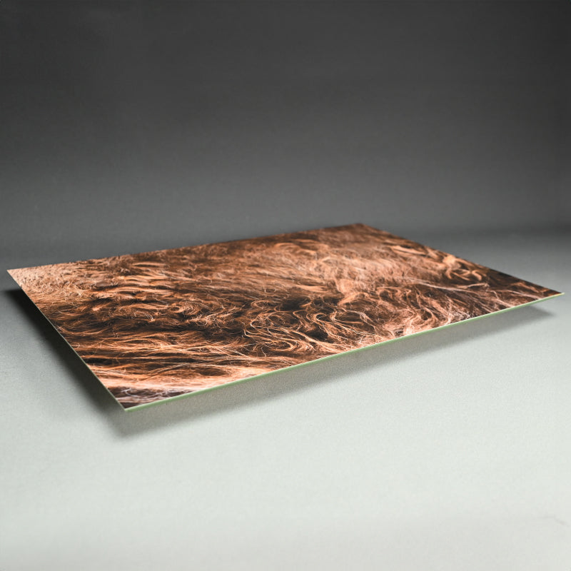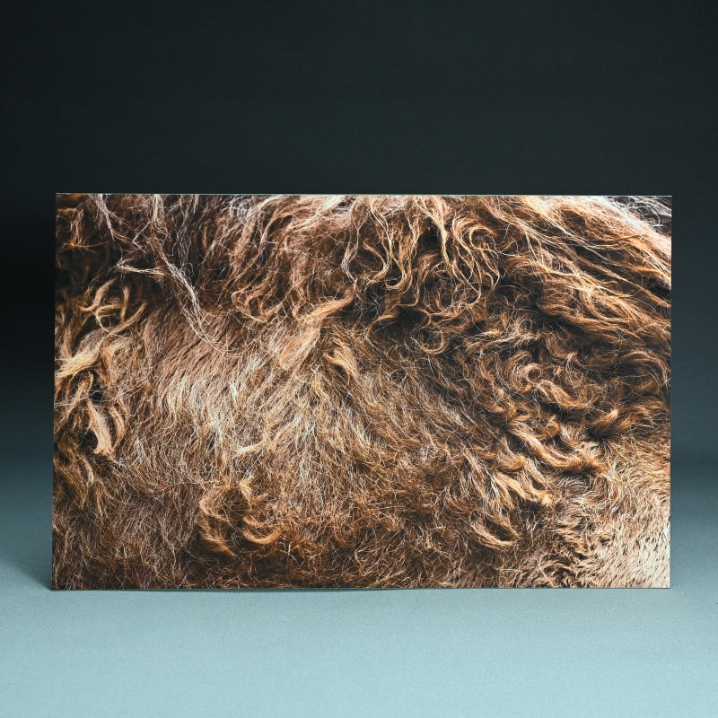 An extreme photograph of the curling hairs of a Dromedary Camel mounted as a hanging panel by Horitani Shoichi signed on back and numbered 1/15. It is 54 x 36 x 3 cm (21-1/2 x 14-1/2 x 1 inches) and is in perfect condition, mounted on a wooden panel elevated from the wall.