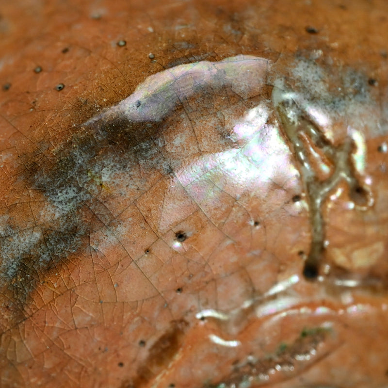 A fabulous deep red Raku Chawan with a barely discernable foot raising it slightly off the surface enclosed in a wooden box accrediting the bowl to Gengensai, 11th generation head of Urasenkei Tea School. The bowl is a masterpiece, with a prominent ridge inside and a slight well forming a perfect chazuri for whipping the tea with the whisk. The artists distinctive Ka-o signature is incised into the base along the Kodai (footring). It is 12 cm (5 inches) diameter, 9.5 cm (just less than 4 inche3s) tall and in excellent condition.